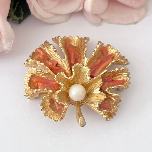 1950s Capri Freshwater Pearl & Coral Sea Urchin Brooch