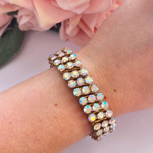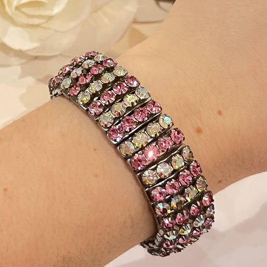 1950s Aurora Borealis and Pink Diamanté Sparkly Expandable Cuff Bracelet