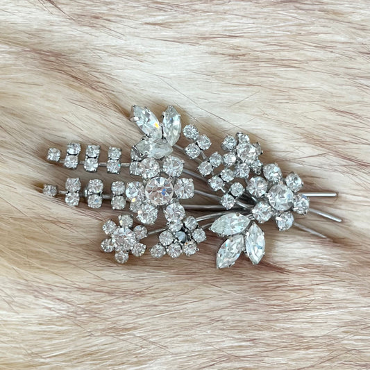1940s Silver Tone Sparkly Diamanté Floral Spray Brooch