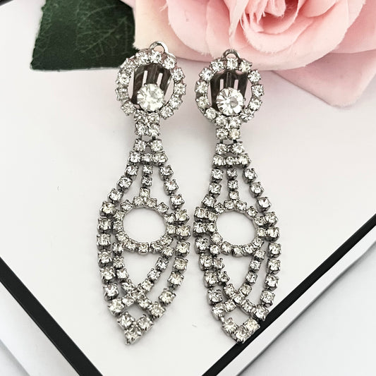 1950s Sparkly Diamanté Dangly Clip On Earrings