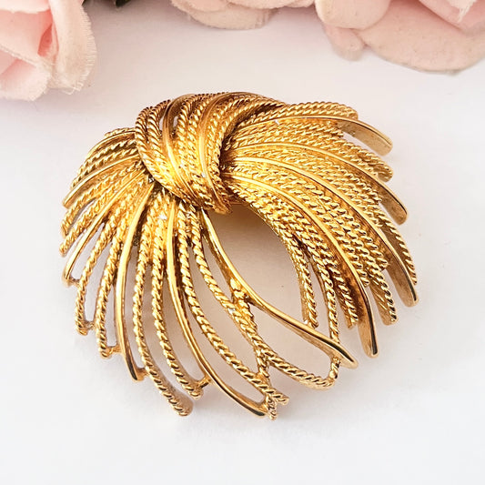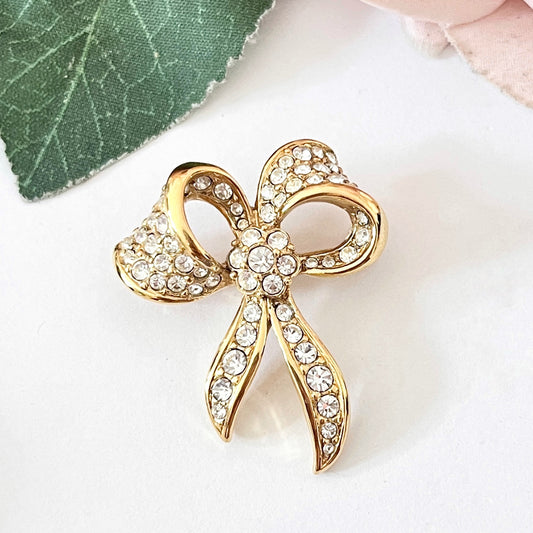 1980s Attwood & Sawyer 22ct Gold Plated Swarovski Crystal Bow Brooch With Box