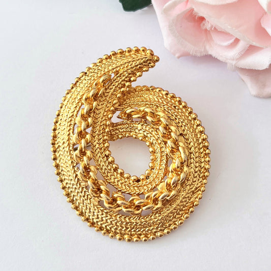 1980s Gold Plated Black Enamel Diamanté Brooch