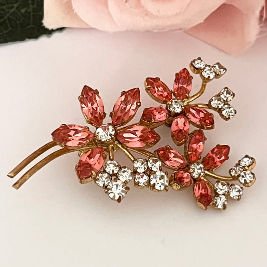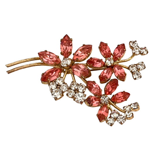 1950s Raspberry Pink Dangly Diamanté Brooch