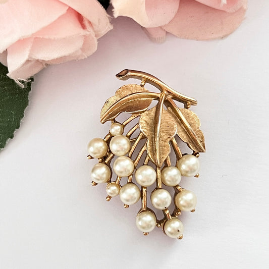 1960s Trifari Brushed Gold Plated Faux Pearl Brooch