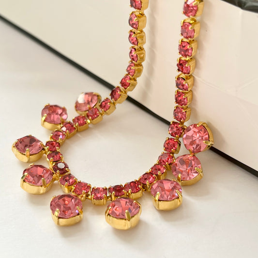 1950s Princess Pink Diamanté Gold Plated Sparkly Necklace