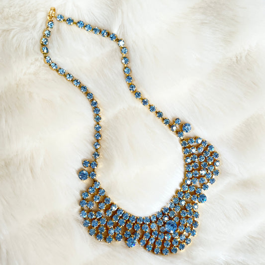 1950s Denim Blue Diamanté Sparkly Gold Plated Necklace