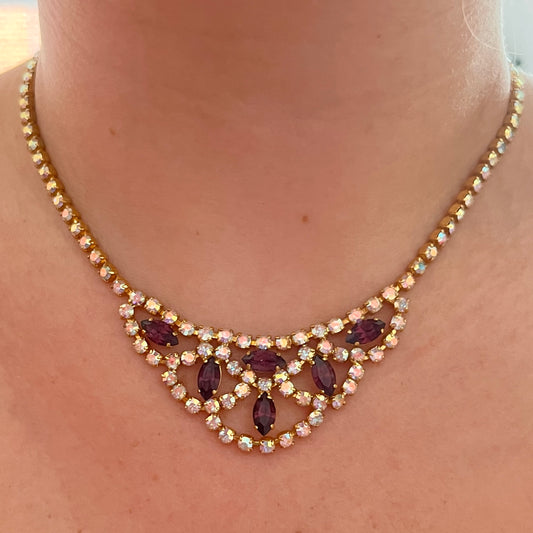 1960s Aurora Borealis Purple Diamanté Statement Necklace
