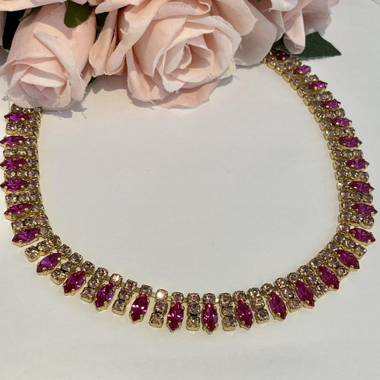 1950s Statement Lilac and Hot Pink Diamanté Bling Necklace