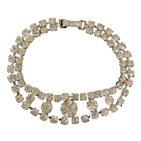 1940s Rhodium Plated Sparkly Emerald Green Diamanté Bracelet