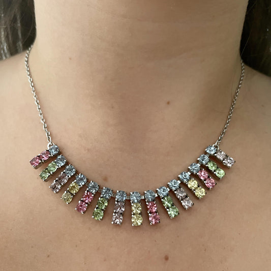 1950s Rainbow Pastel Diamanté Sparkly Necklace