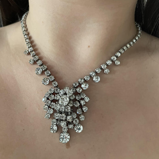 1940s Harlequin Pendant Sparkly Drop Necklace
