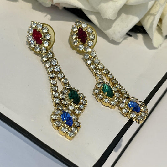 1980s Harlequin Sparkly Gold Plated Dangly Earrings