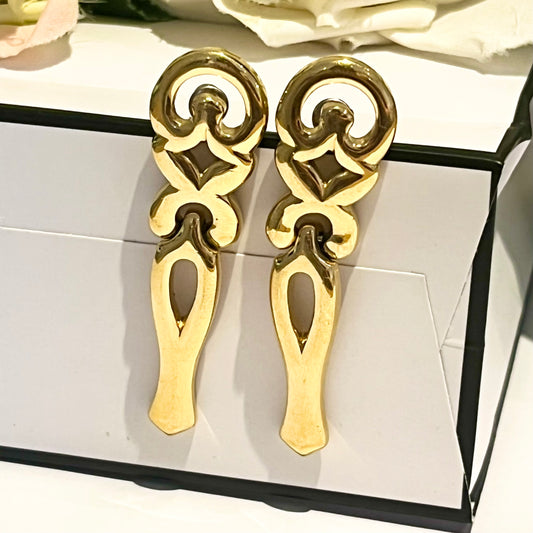 1980s Bergdorf Goodman Gold Plated Dangly Pierced Earrings