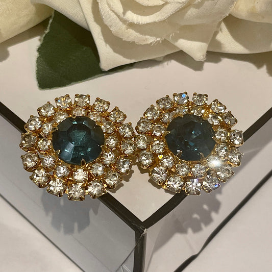 1980s Sparkly Royal Blue Diamanté Clip On Earrings