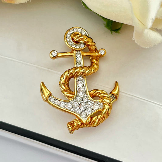 1980s Attwood & Sawyer Gold Plated Diamanté Anchor Brooch