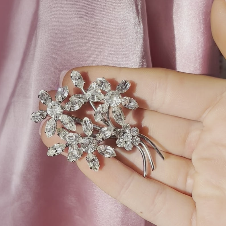 1930s Sparkly Diamanté Floral Spray Brooch
