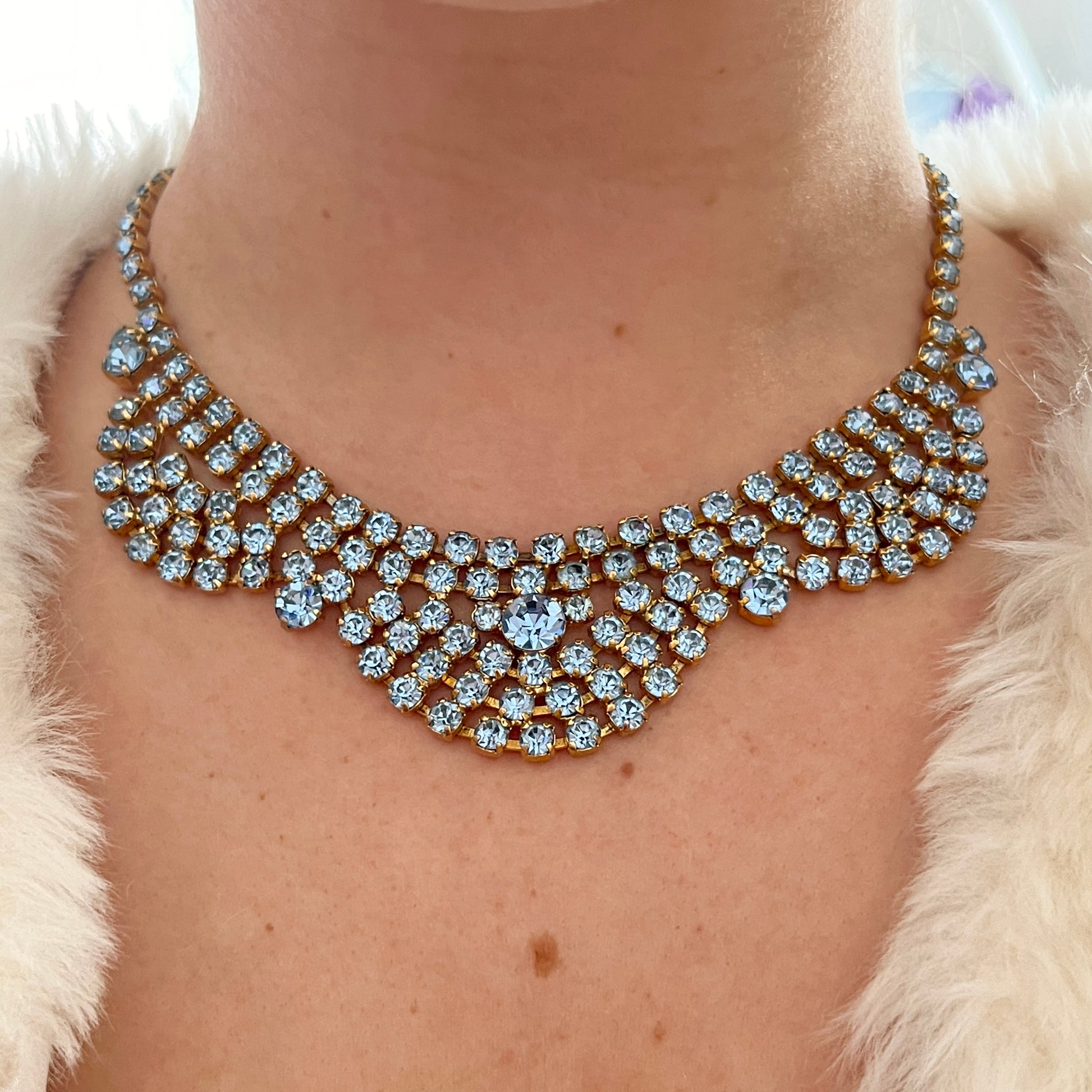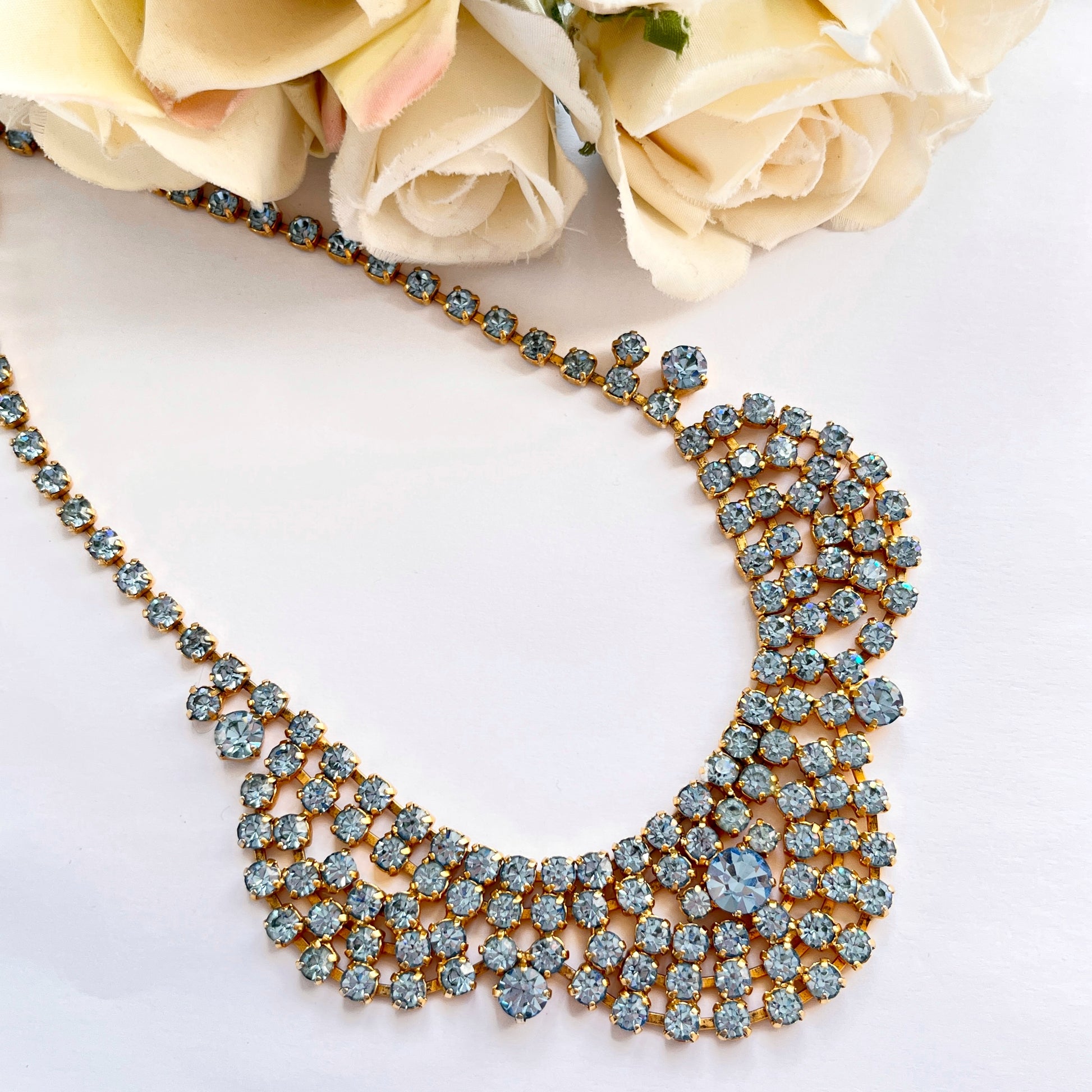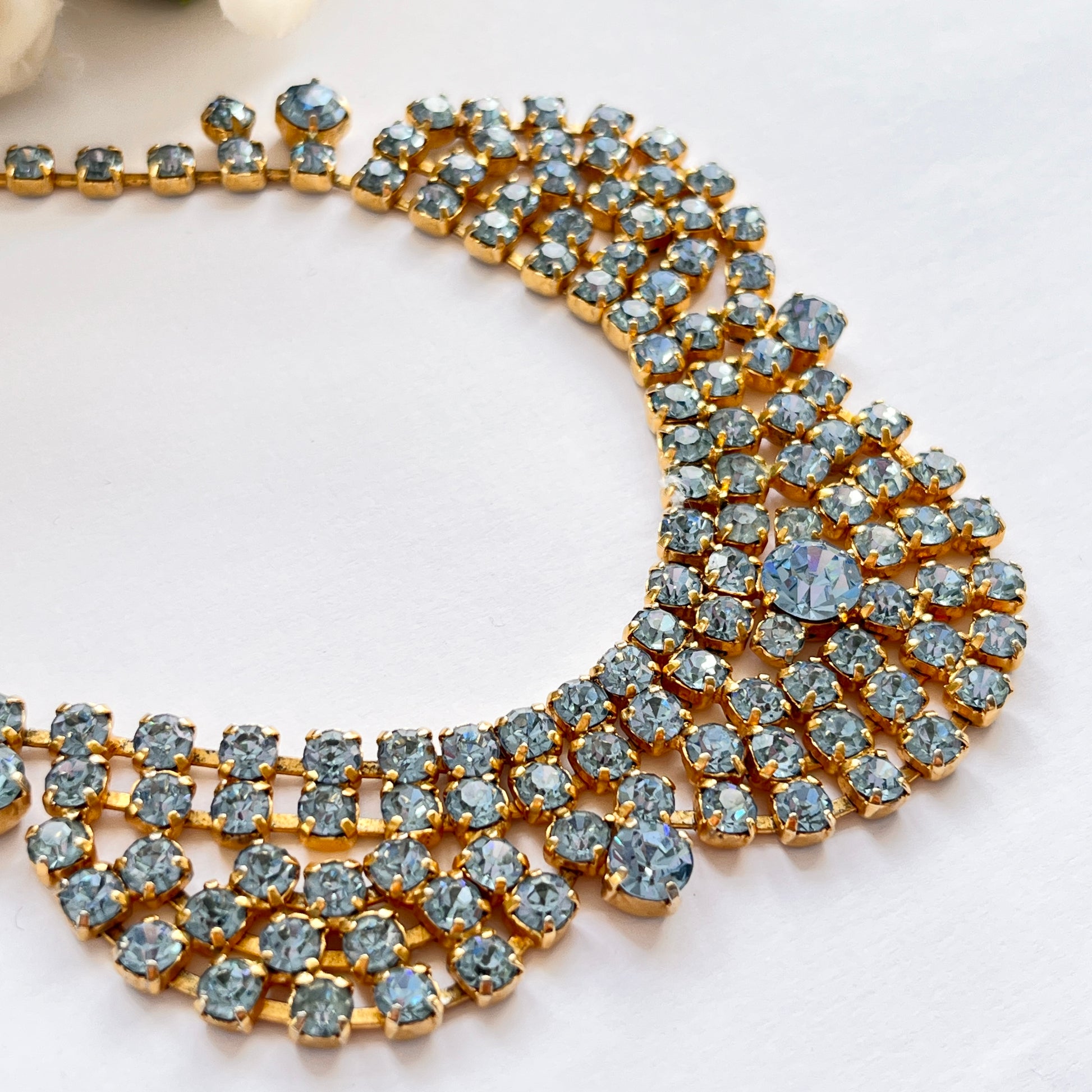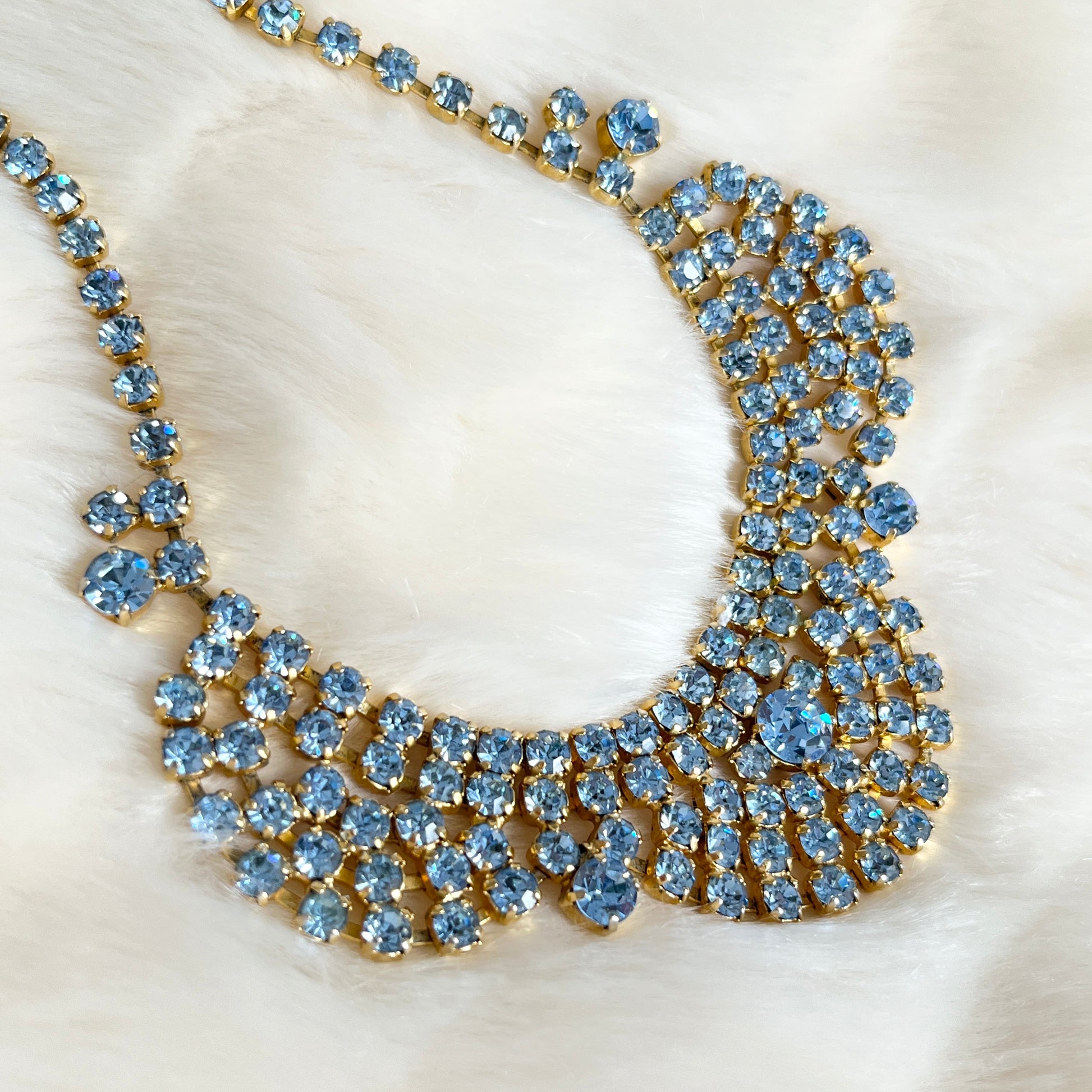 1950s Denim Blue Diamanté Sparkly Gold Plated Necklace
