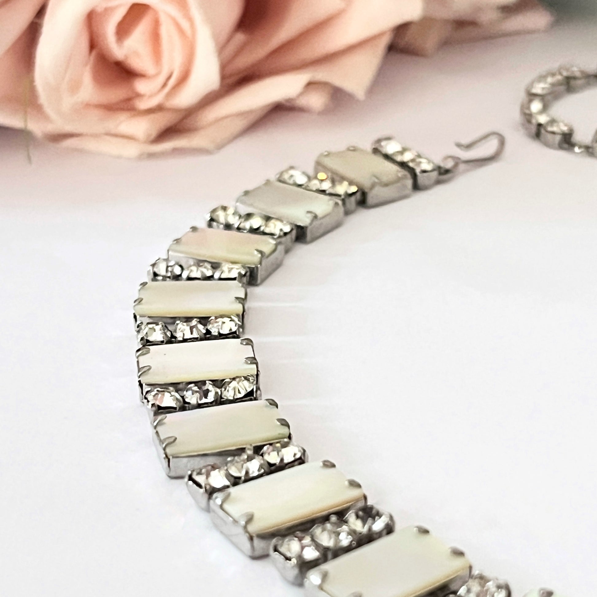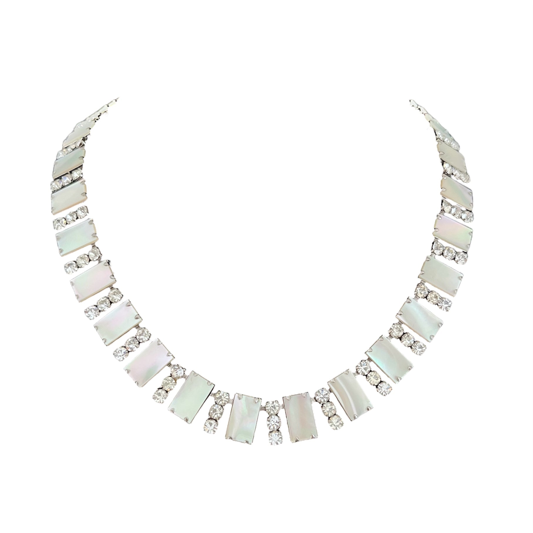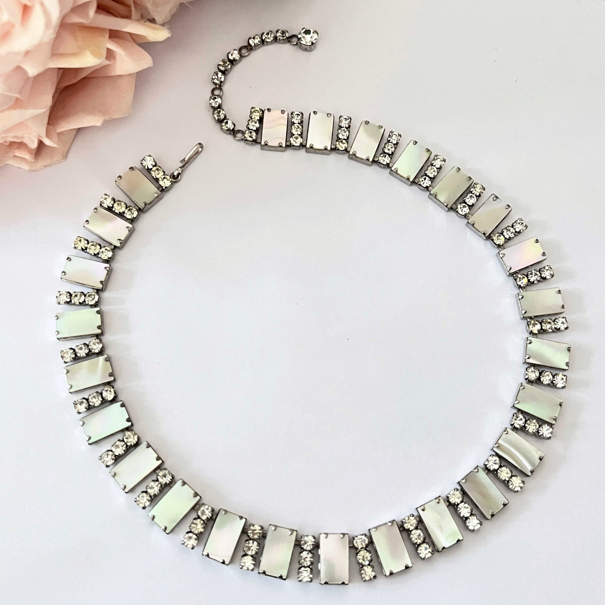 1950s Mother Of Pearl Diamanté Statement Collar Necklace