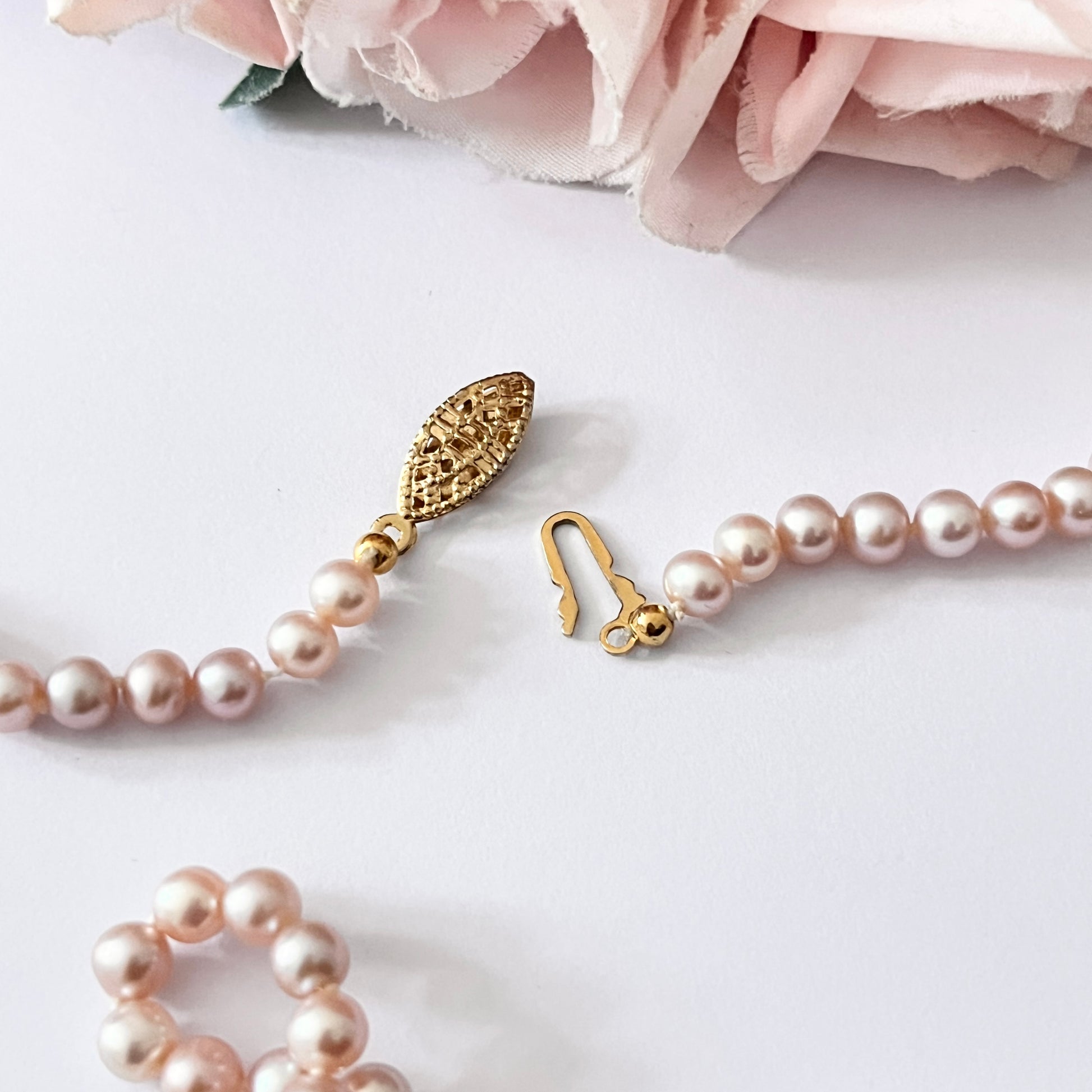 1950s Pink Cultured Pearl Gold Plated Clasp Necklace