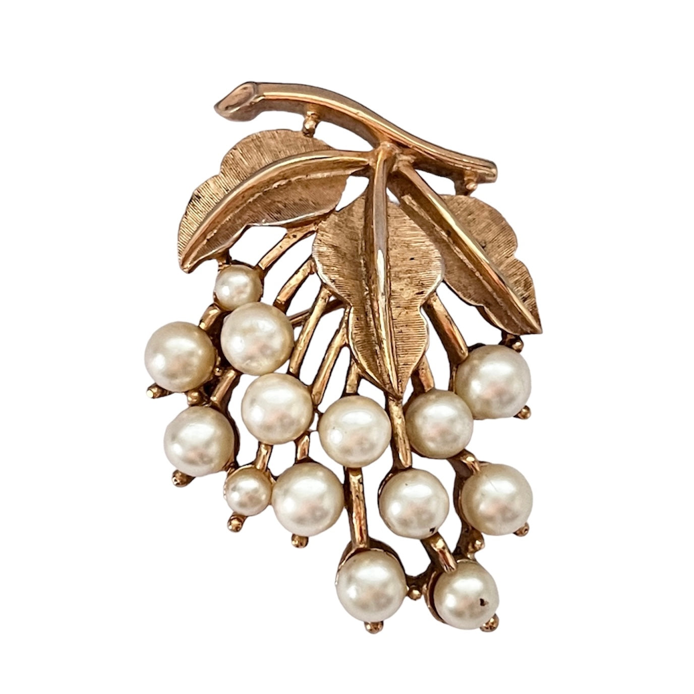 1960s Trifari Brushed Gold Plated Faux Pearl Brooch