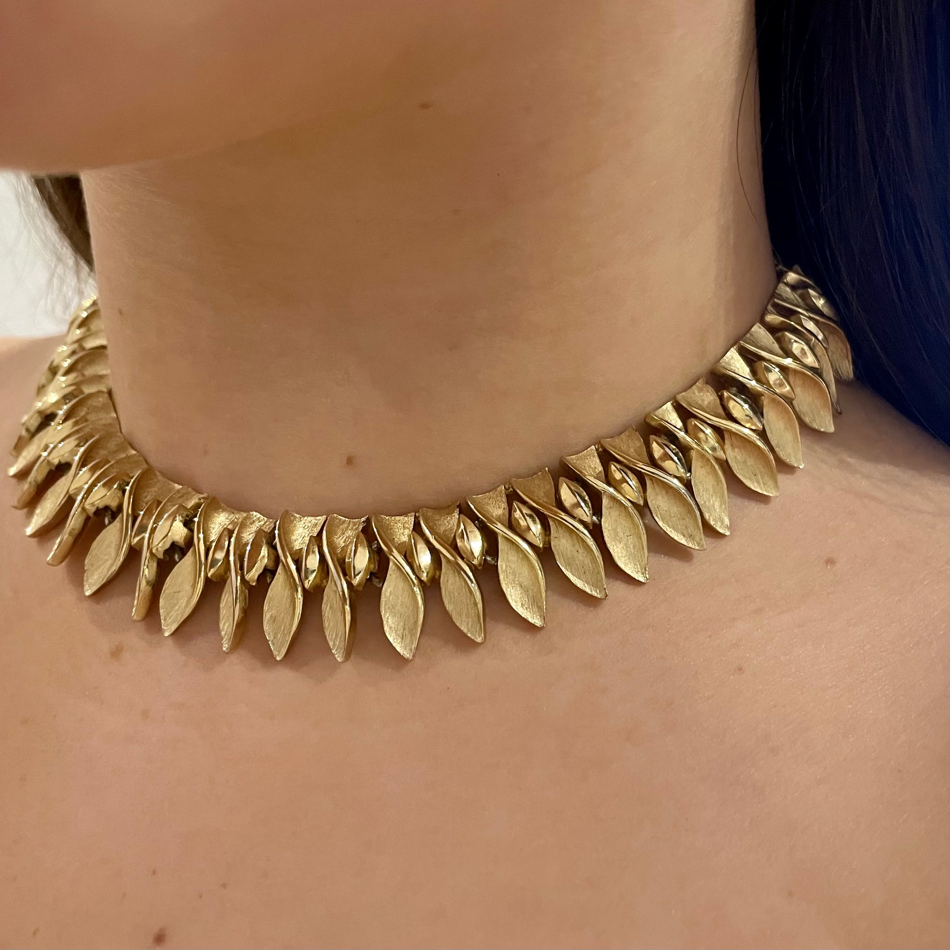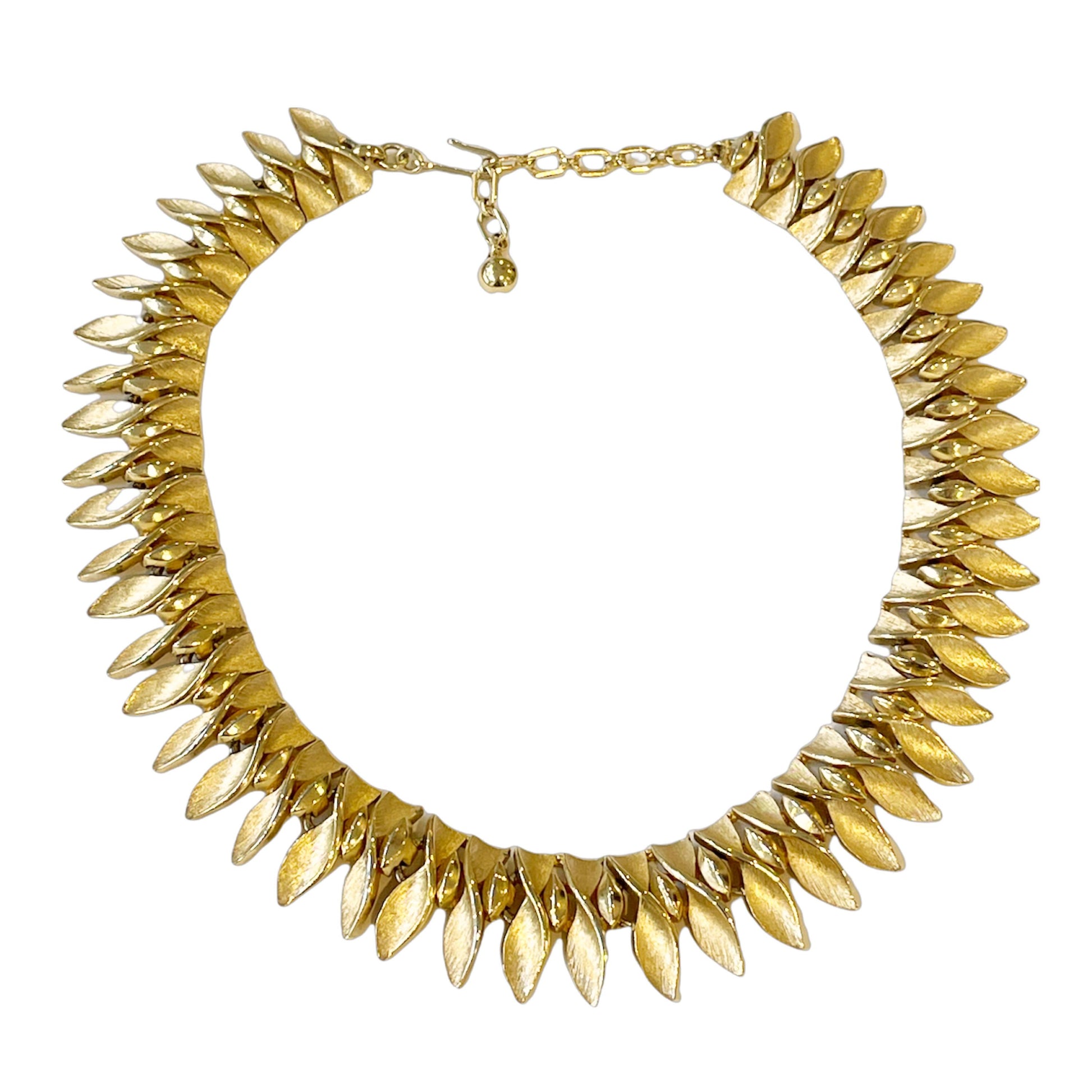 1960s Trifari Brutalist Brushed Gold Tone Statement Collar Necklace