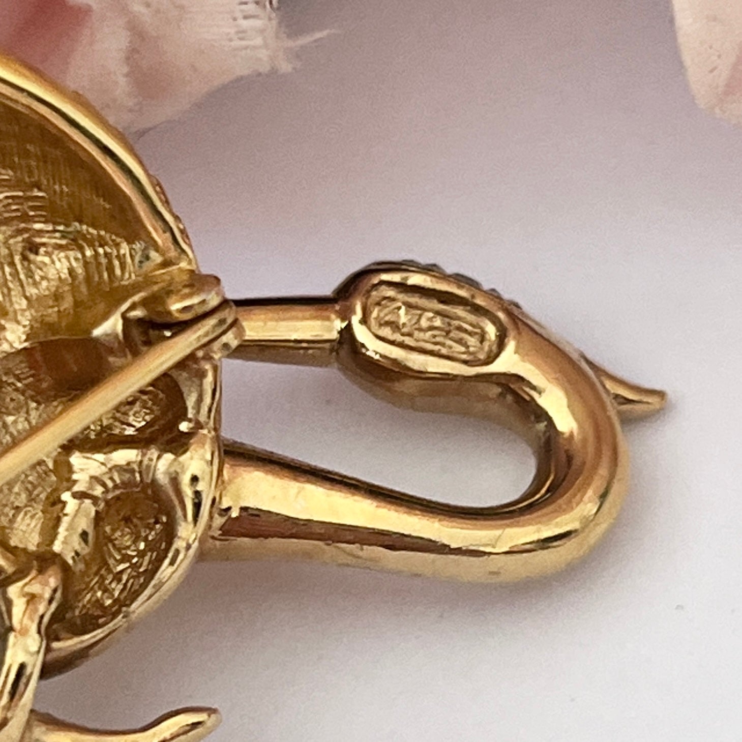 1980s Attwood & Sawyer Stork Green Wnamel Swarovski Crystals 22ct Gold Plated Brooch. Crafted from high-quality 22ct gold plated metal, this brooch features sparkling swarovski crystals and green enamel. It sits securely on with its rollover pin clasp. The brooch comes complete with the signature A&S logo stamped on the back, a testament to its authenticity and quality. Whether it be for an Attwood and Sawyer collector or for a lover of signed vintage costume jewellery, this designer brooch is the perfect addition to your jewellery collection. Does not come in original box unless stated otherwise.
