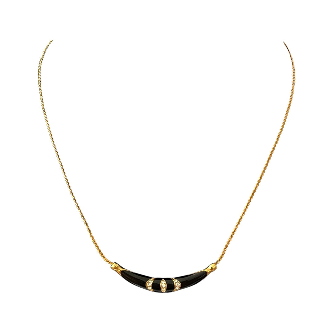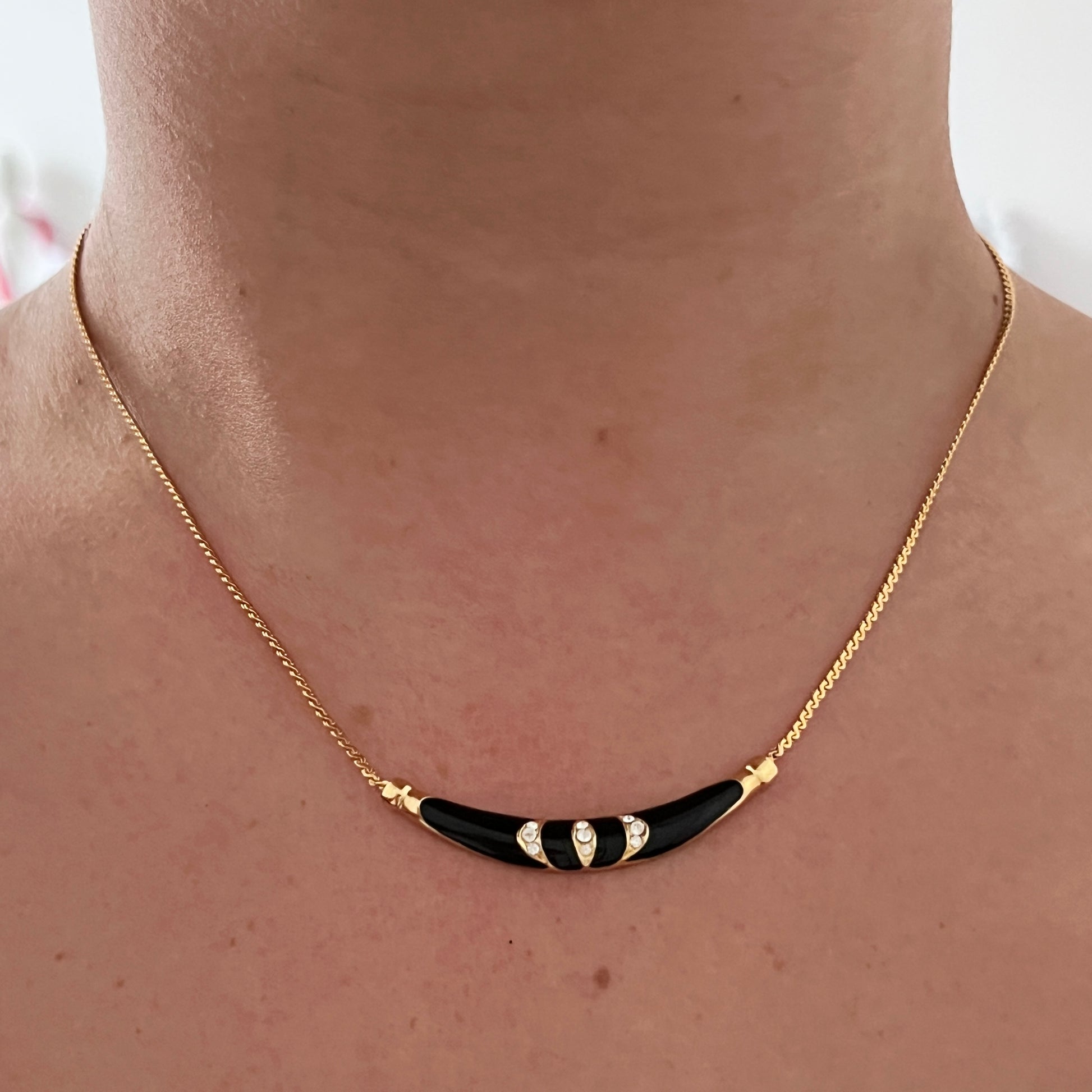 1980s Black Enamel Diamanté Gold Plated Chain Necklace