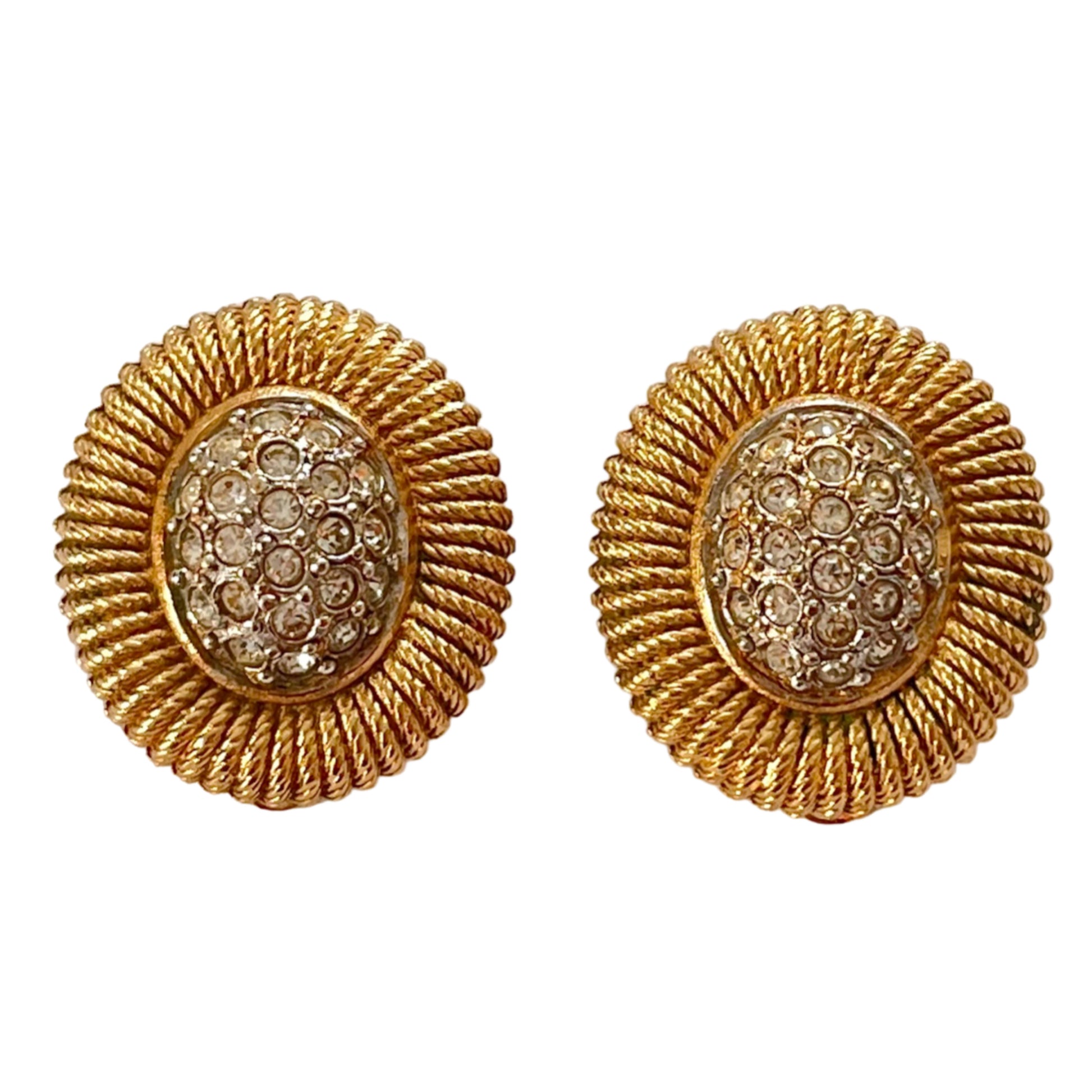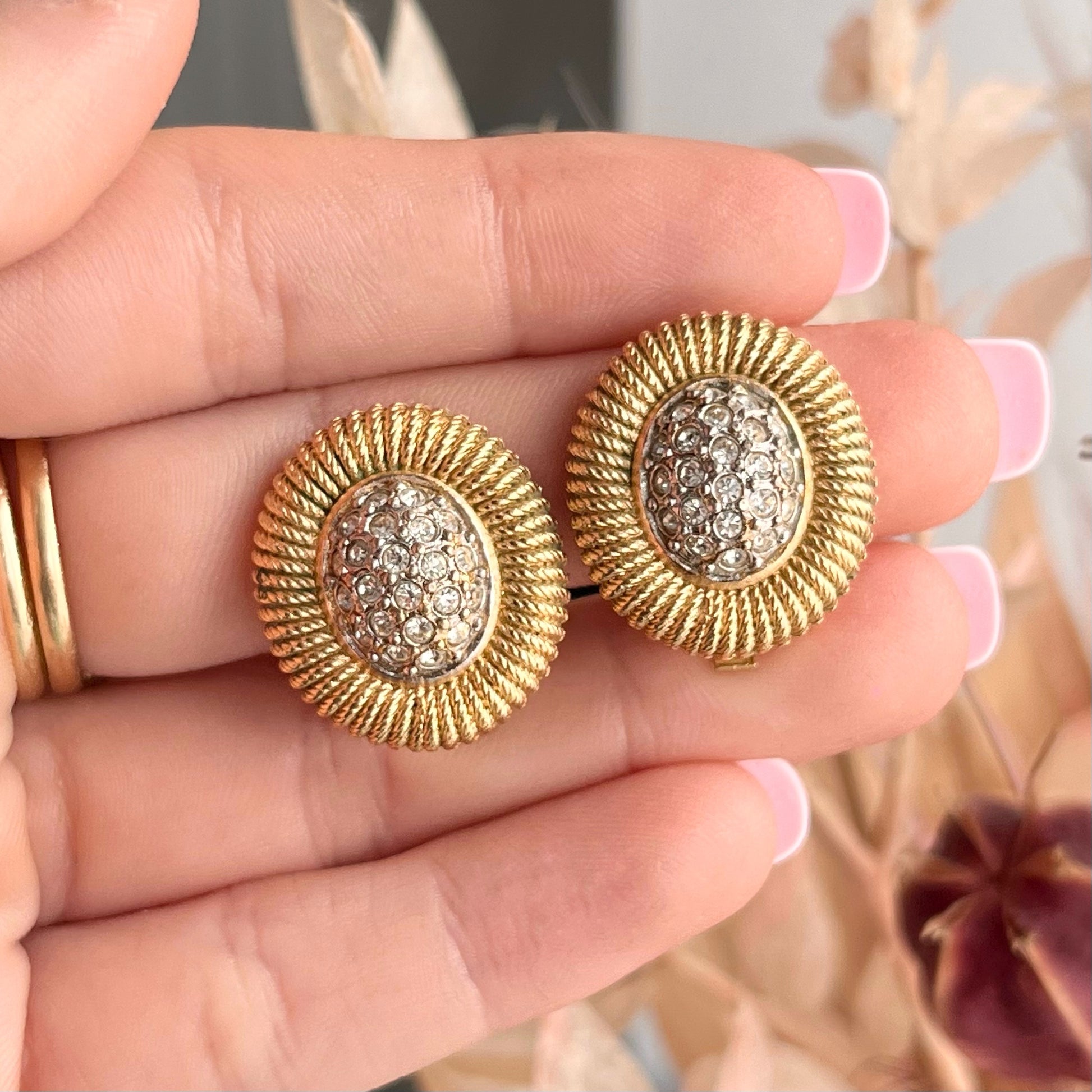 1980s Burberry Gold Plated Diamanté Clip On Earrings