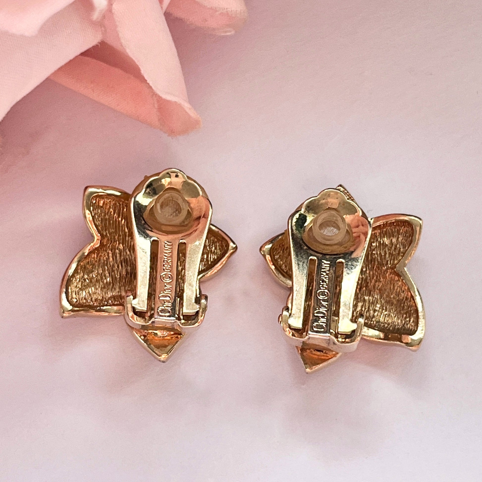 Designer: Christian Dior. Vintage from the 1980s. Earring length: 1 inch / 2.3cm. Earring width: 0.75 inches / 2cm.