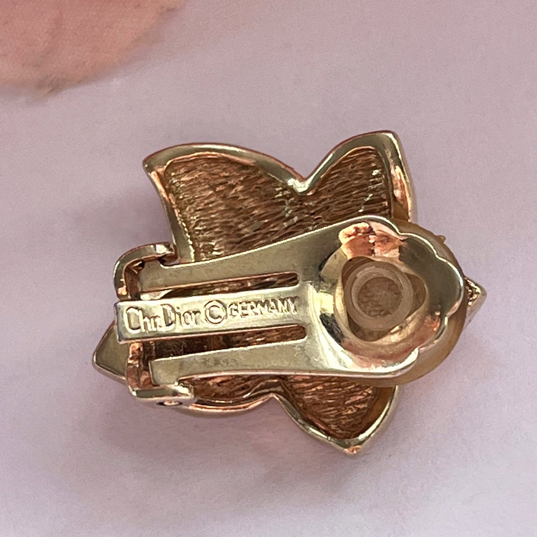 1980s Christian Dior Germany Gold Plated Black Enamel Diamanté Clip On Earrings, a true vintage treasure that exudes glamour and style. These clip on earrings are a stunning example of the high-quality craftsmanship that vintage Dior jewellery is renowned for. Featuring sparkling diamantés and black enamel. Crafted from lustrous gold plated metal these earrings are and comfortable to wear on all ears, even if they're not pierced. The earrings come complete with the signature Dior logo marked on the back, a testament to their authenticity and quality. However, usually Dior jewellery is marked 'CHR DIOR', but these are signed for 'CHR DIOR GERMANY' so this makes these earrings a little rarer! They also come beautifully packaged, making them an ideal gift for a lover of signed vintage costume jewellery or a Christian Dior collector. Not in original branded packaging unless stated otherwise.