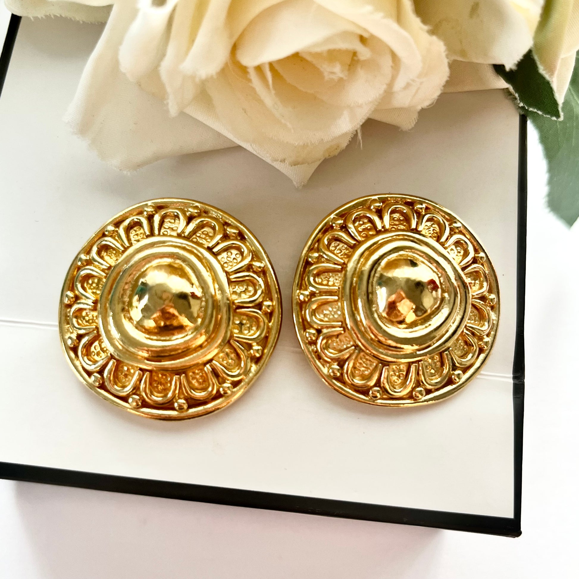 1980s Dior Gold Plated Irregular Shaped Circle Clip On Earrings