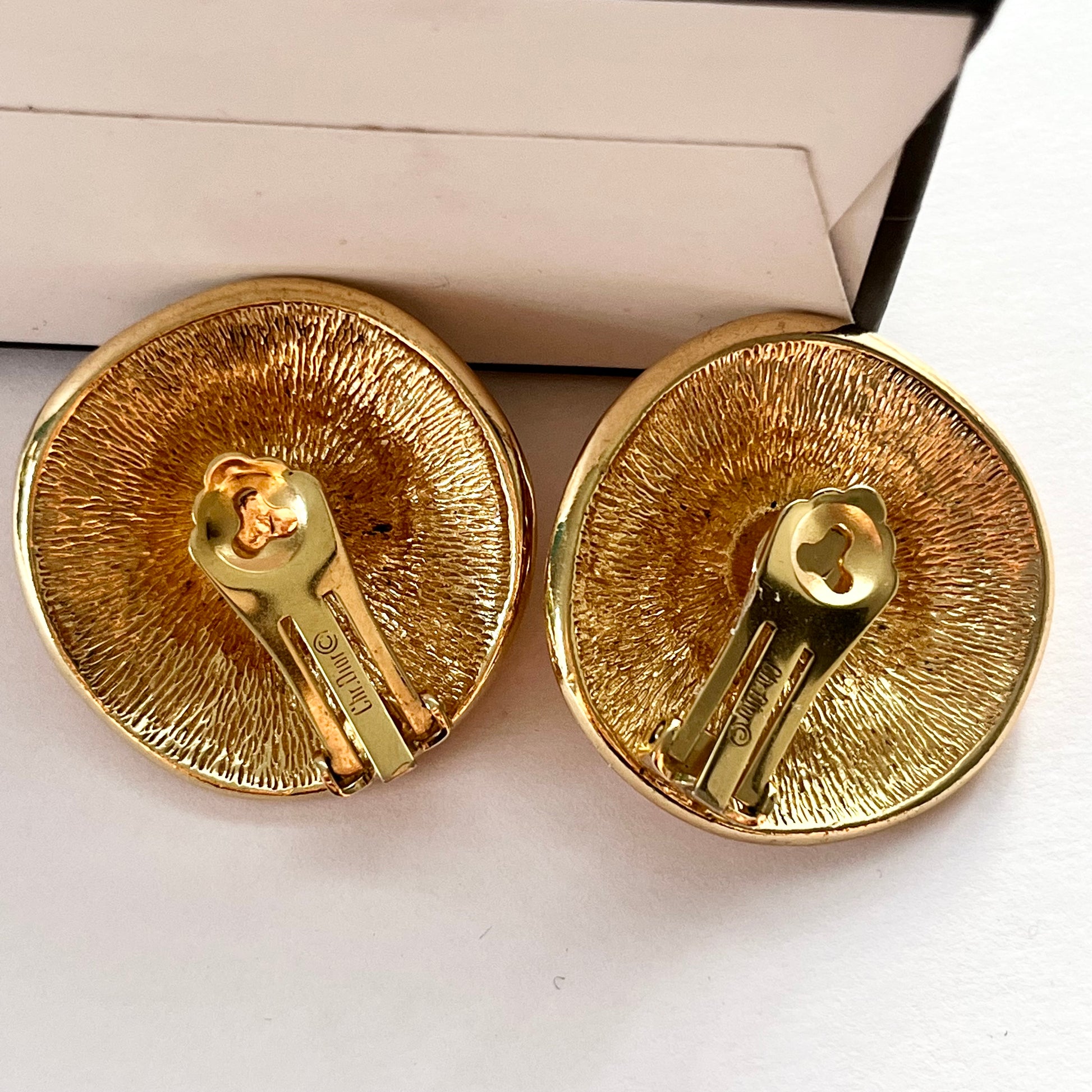 1980s Dior Gold Plated Irregular Shaped Circle Clip On Earrings, a true vintage treasure that exudes glamour and style. These clip on earrings are a stunning example of the high-quality craftsmanship that vintage Dior jewellery is renowned. Crafted from lustrous gold plated metal these earrings feature an irregular shaped circle design. These earrings are comfortable to wear and suit all ears, even if they're not pierced. These power dressing earrings are incredibly versatile, making them perfect for a variety of occasions, from a casual day out to a more formal event. The earrings come complete with the signature Christian Dior logo marked on the back, a testament to their authenticity and quality. They also come beautifully packaged, making them an ideal gift for a lover of signed vintage costume jewellery or a Christian Dior collector. (Does not come in original designer packaging unless stated otherwise.)