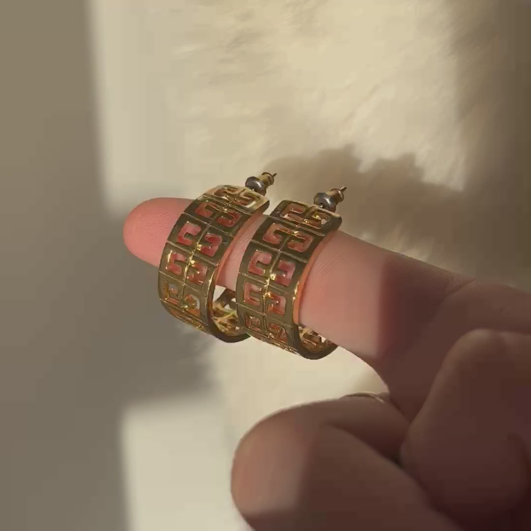 1980s Givenchy Monogram Logo Chunky Hoop Gold Plated Earrings