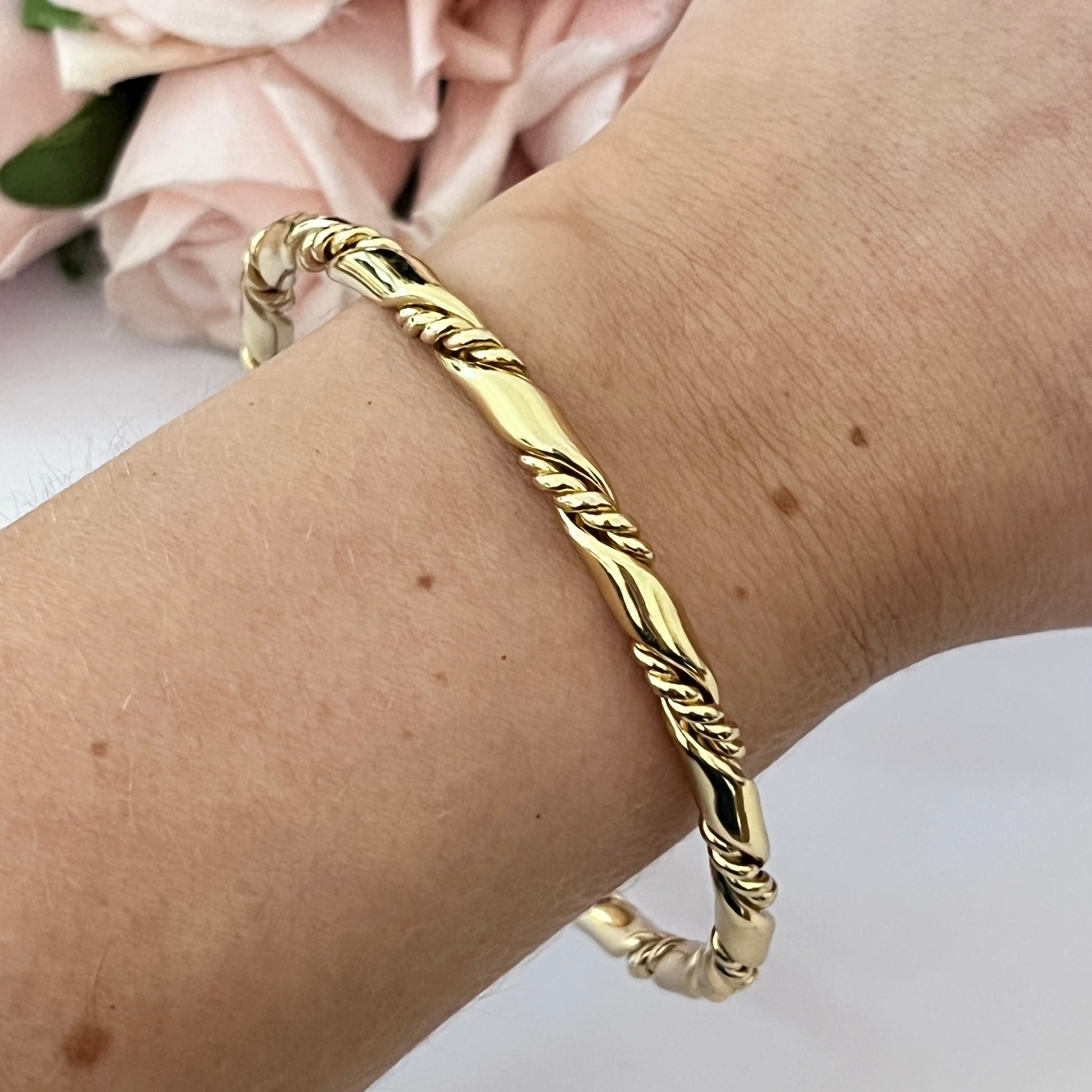1980s Gold Plated Bangle. A beautiful gold plated bangle, with chain style detailing. Vintage from the 1980s. This bracelet is in great quality considering it’s vintage age.