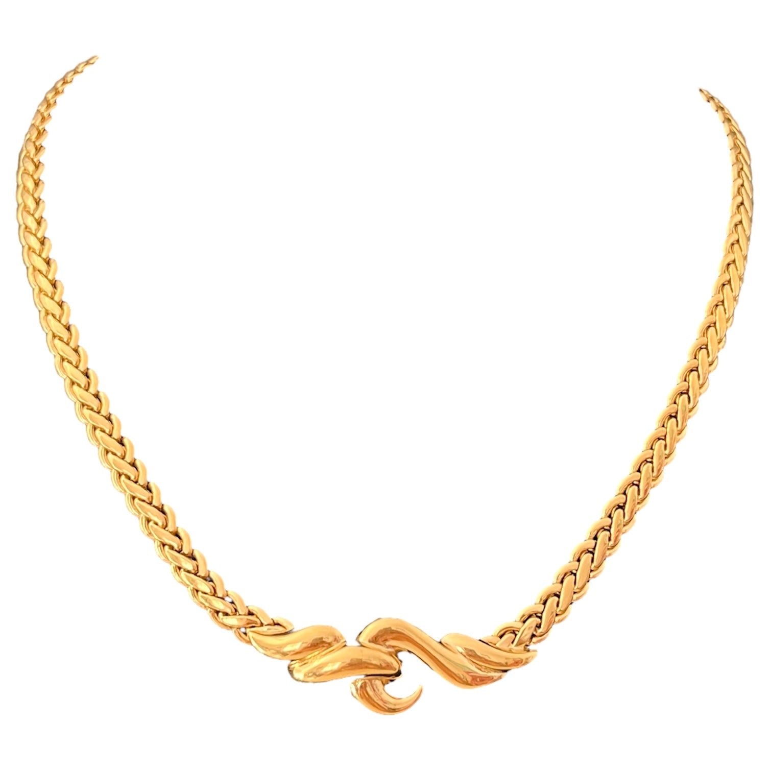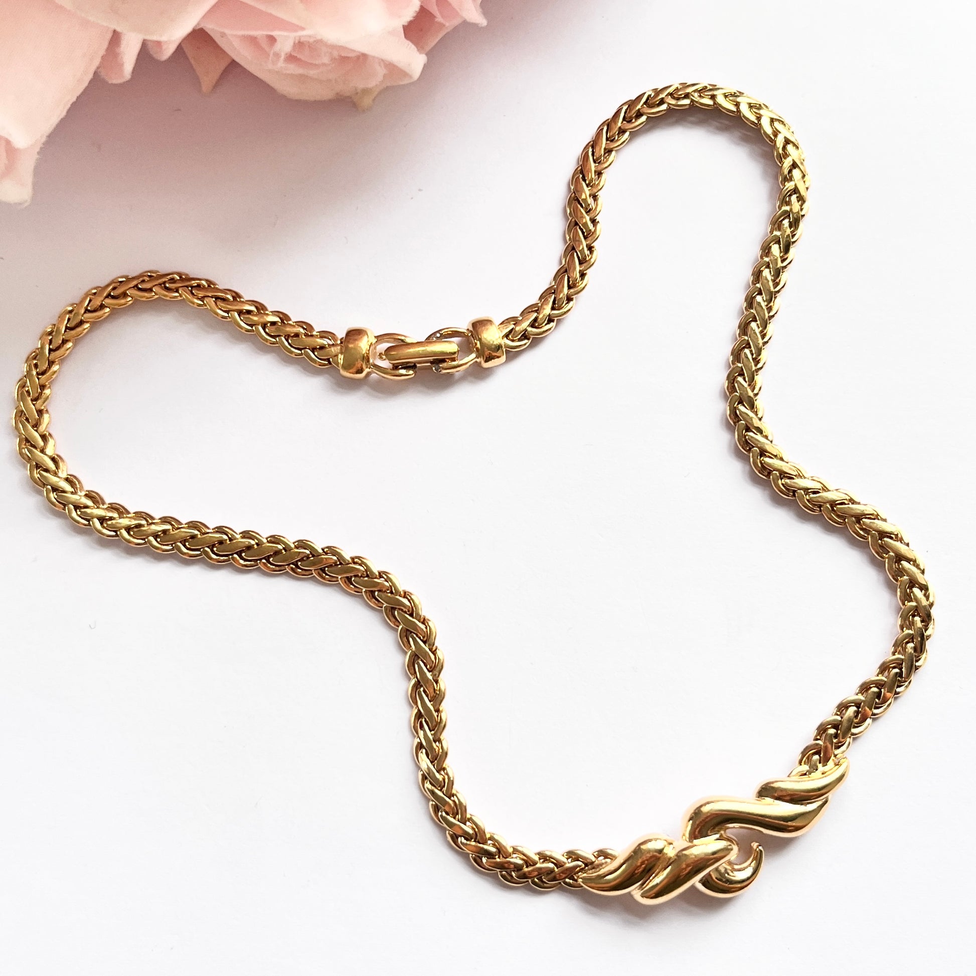 1980s Gold Plated Collar Chain Necklace. This stunning costume necklace really is a statement piece. Crafted with exceptional quality and attention to detail, this vintage necklace features a gold plated pendant. It comes in a beautiful gift box, ready to be presented to your loved one or to add to your personal vintage costume jewellery collection. The necklace is worn securely with its hinge clasp.