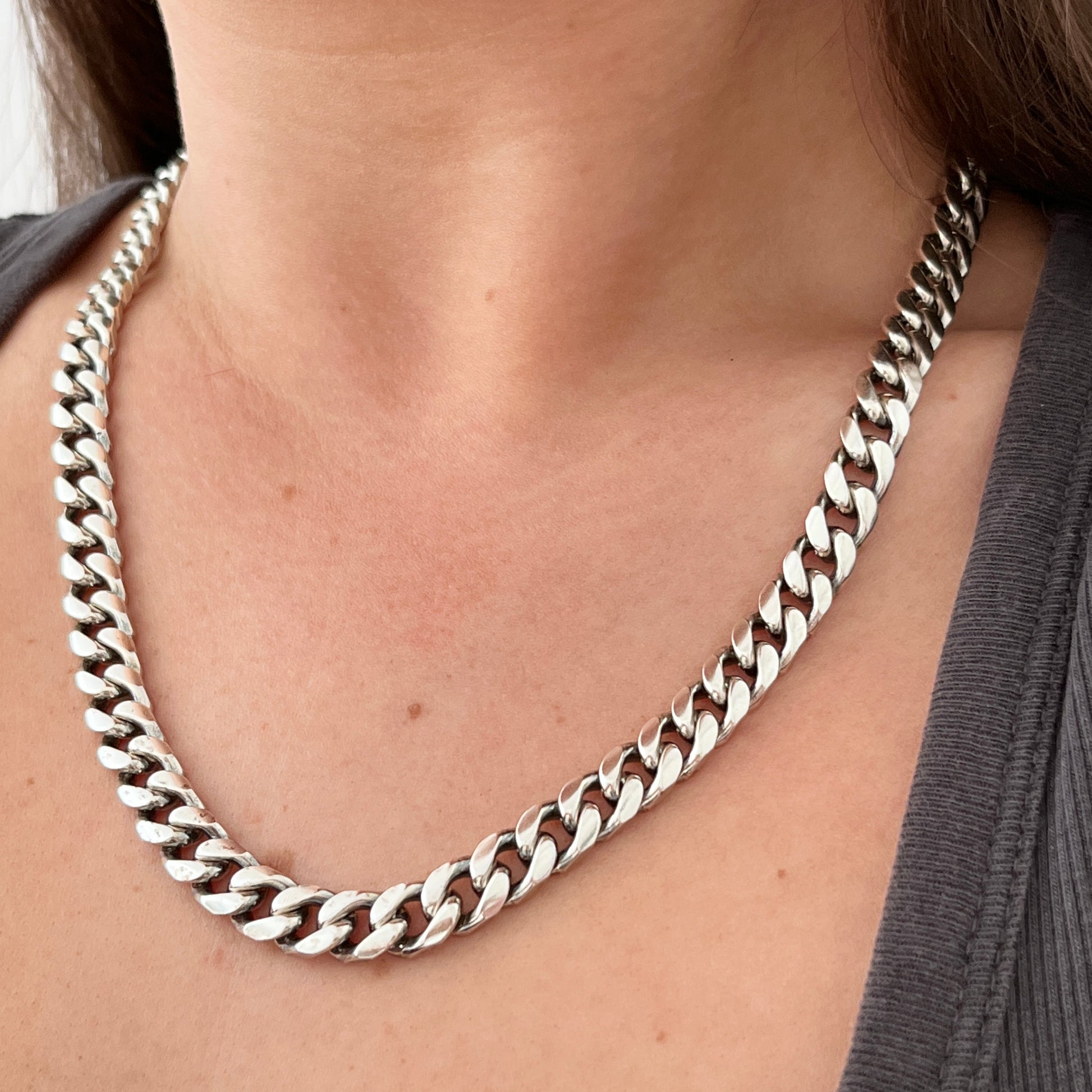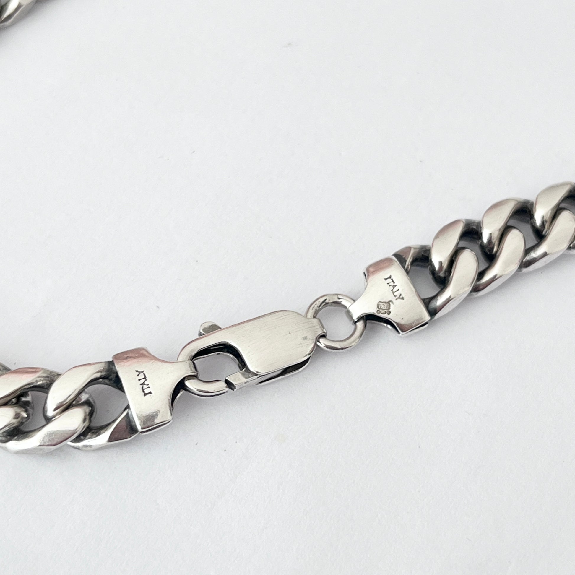 1980s Italian Sterling Silver Curb Chain Necklace. This gorgeous necklace is solid sterling silver. Marked for Italian Sterling silver. Curb link chain style. Work securely with a lobster claw clasp. Slight vintage wear marks on the reverse if the chain due to vintage age. Clearly marked ITALY 925 & fully hallmarked.