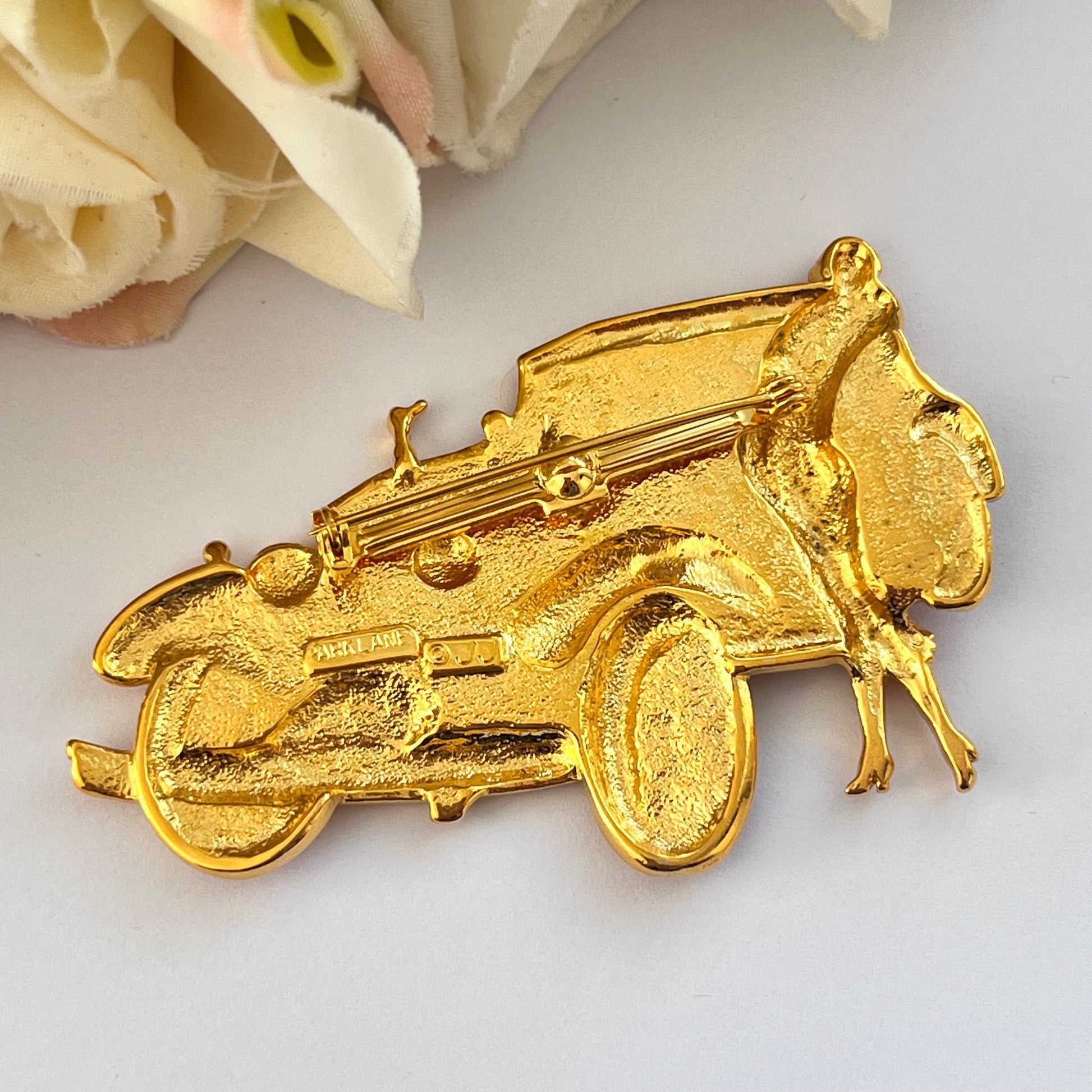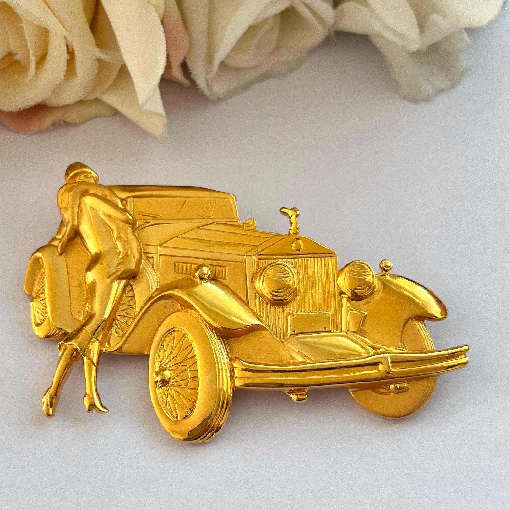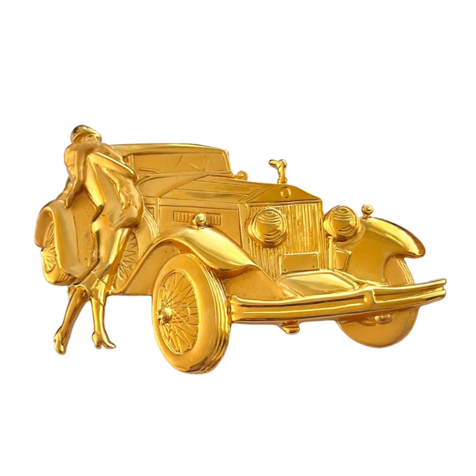 1980s JJ Jonette Jewelry for Park Lane Gold Plated Vintage Lady & Rolls Royce Car Brooch