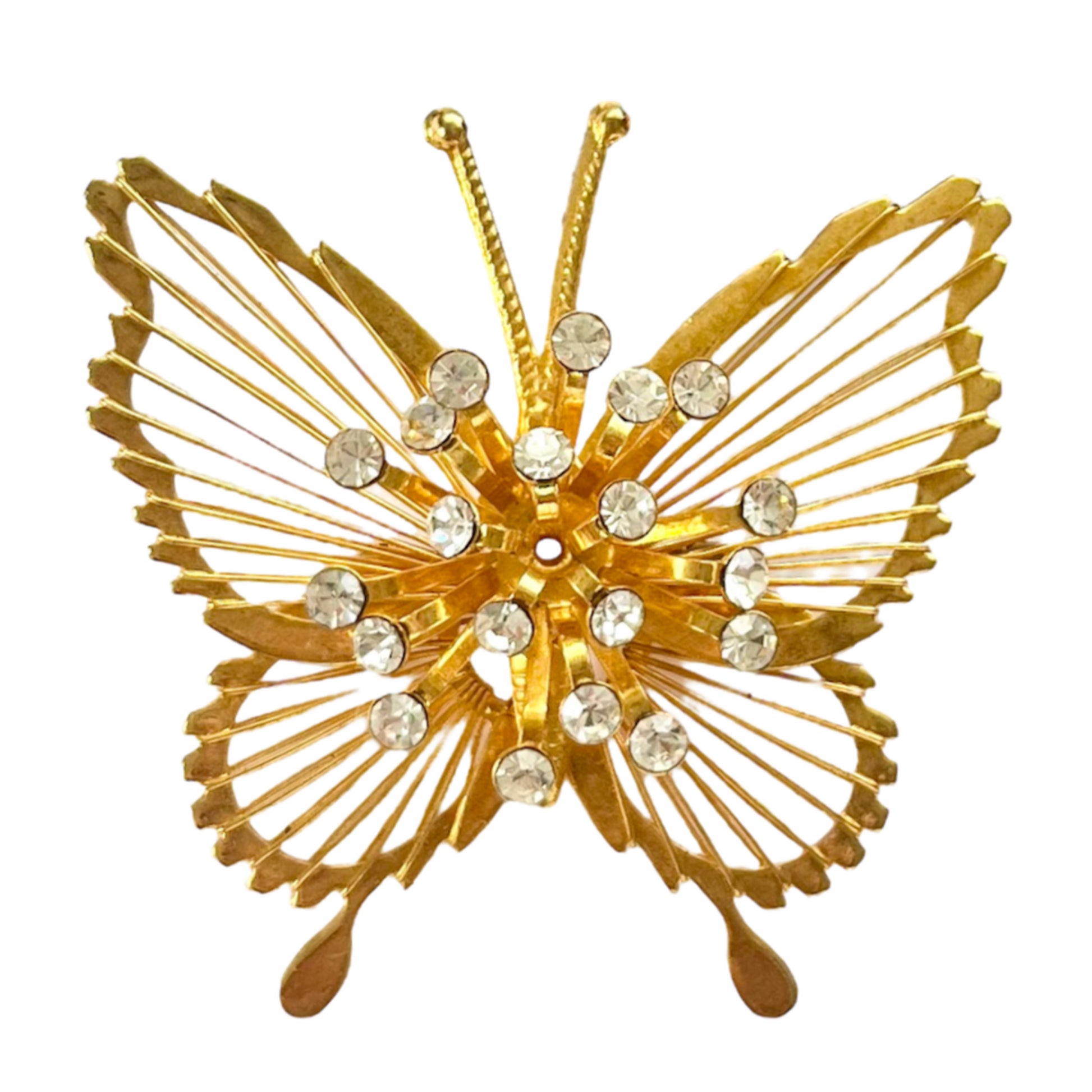 1980s Monet Gold Plated Sparkly Diamanté Butterfly Brooch