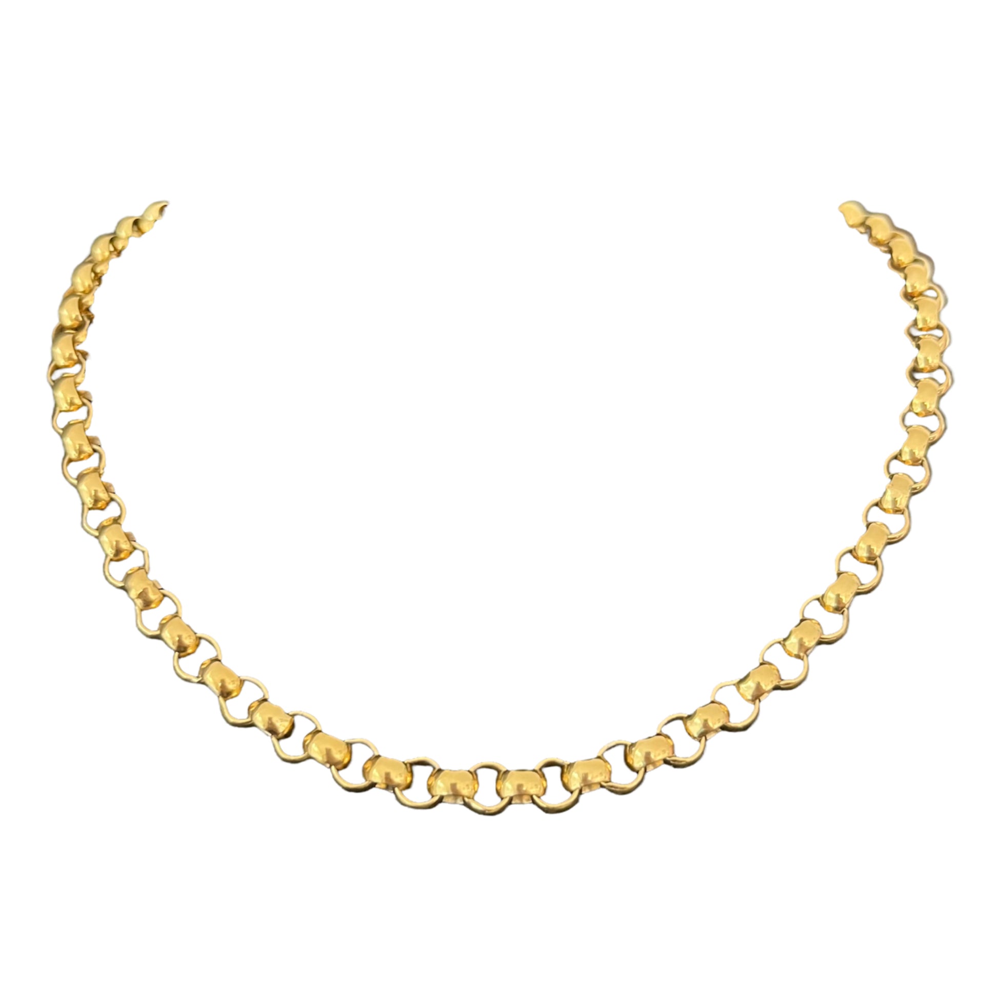 1980s Monet Gold Plated Thick Rolo Chain Necklace. This stunning costume necklace really is a statement piece. Crafted with exceptional quality and attention to detail, this vintage necklace features a gold plated thick rolo chain that hangs nicely from the neck. The necklace showcases a timeless elegance that was present in the power dressing 1980s era. The high-quality craftsmanship of Monet ensures durability, while the unique design ensures that this necklace is a true one-of-a-kind vintage treasure. This style of necklace is perfect for anyone who wants to add a touch of luxury to your everyday look, a gold chain necklace can really elevate any outfit. It is perfect for day to day and formal wear. This simple designer necklace is a perfect gift for the signed vintage costume jewellery collector or anyone who appreciates the classic beauty of vintage pieces. It comes in a beautiful gift box, ready to be presented to your loved one or to add to your personal Monet collection. The necklace is worn securely with its lobster claw clasp. The necklace comes complete with the signature Monet logo tag, a testament to their authenticity and quality. (Does not come in the original designer box unless stated otherwise)