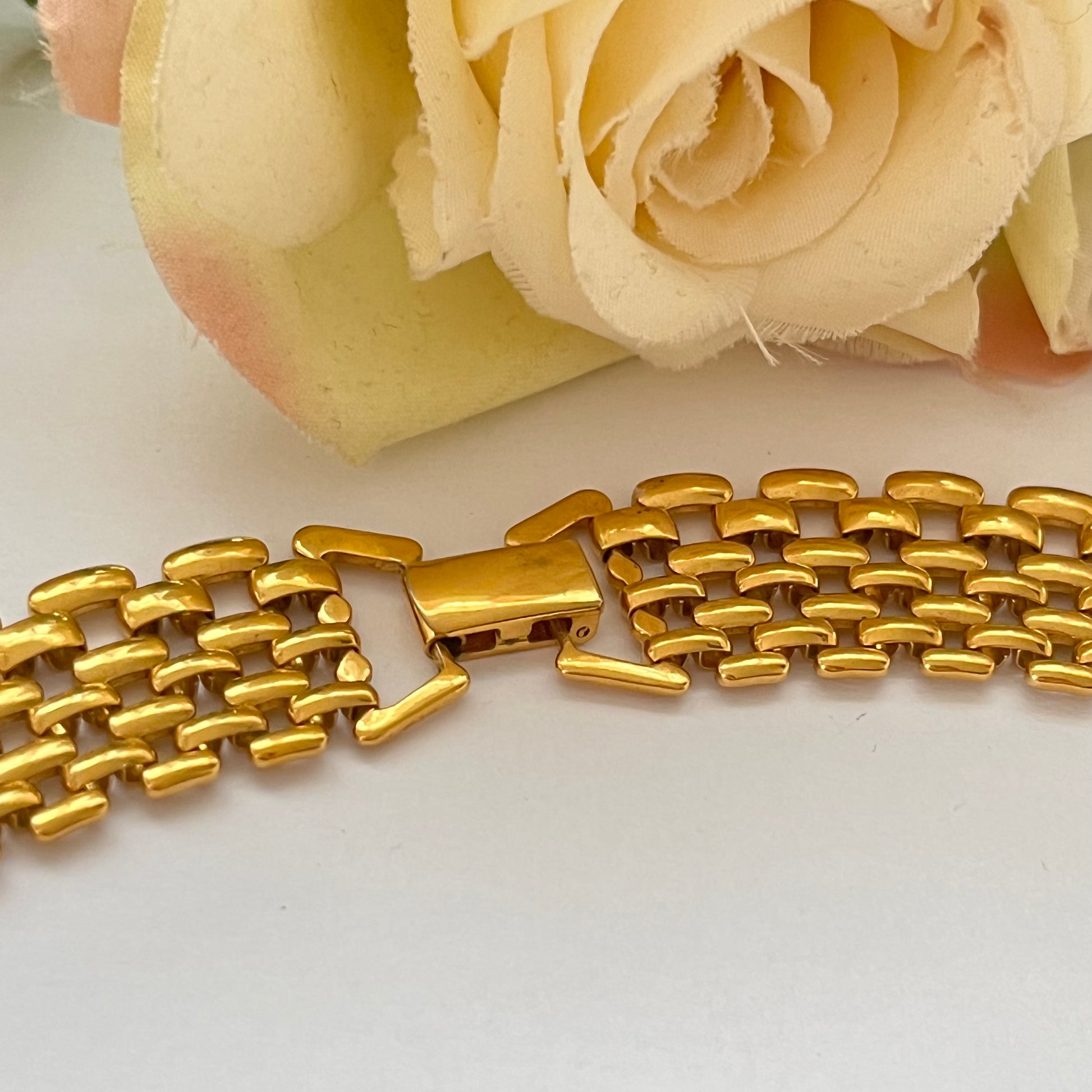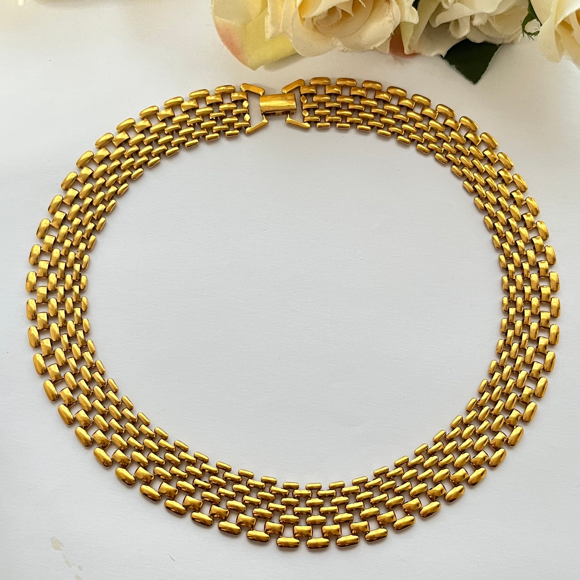 1980s Napier Gold Plated Statement Collar Chain Necklace. This stunning costume necklace really is a statement piece. Crafted with exceptional quality and attention to detail, this amazing vintage necklace features a gold plated chain that sits nicely from the collarbone. The necklace showcases a timeless elegance that was present in the power dressing 1980s era. The high-quality craftsmanship of Napier ensures durability, while the unique design ensures that this necklace is a true one-of-a-kind vintage treasure. This style of necklace is perfect for anyone who wants to add a touch of luxury to your everyday look, a statement gold chain necklace can really elevate any outfit. It is perfect for day to day and formal wear. This designer necklace is a perfect gift for the signed vintage costume jewellery collector or anyone who appreciates the classic beauty of vintage pieces. It comes in a beautiful gift box, ready to be presented to your loved one or to add to your personal Napier collection. The necklace is worn securely with its hinge clasp. The necklace comes complete with the signature Napier logo marked on the reverse of the catch, a testament to their authenticity and quality. (Does not come in the original designer box unless stated otherwise)