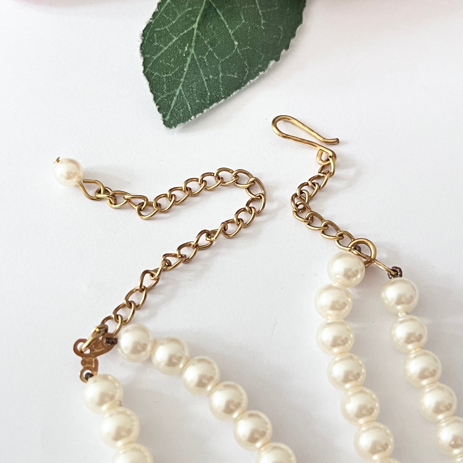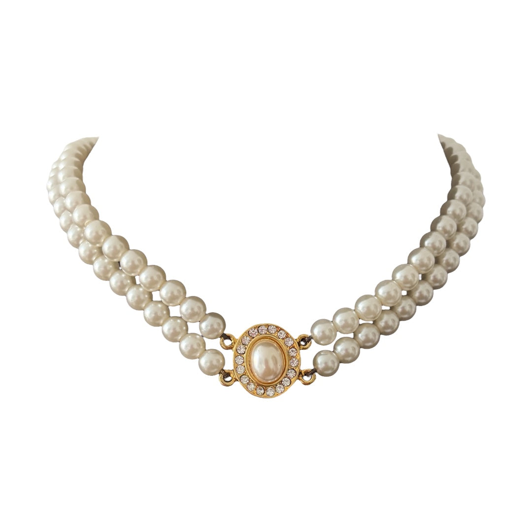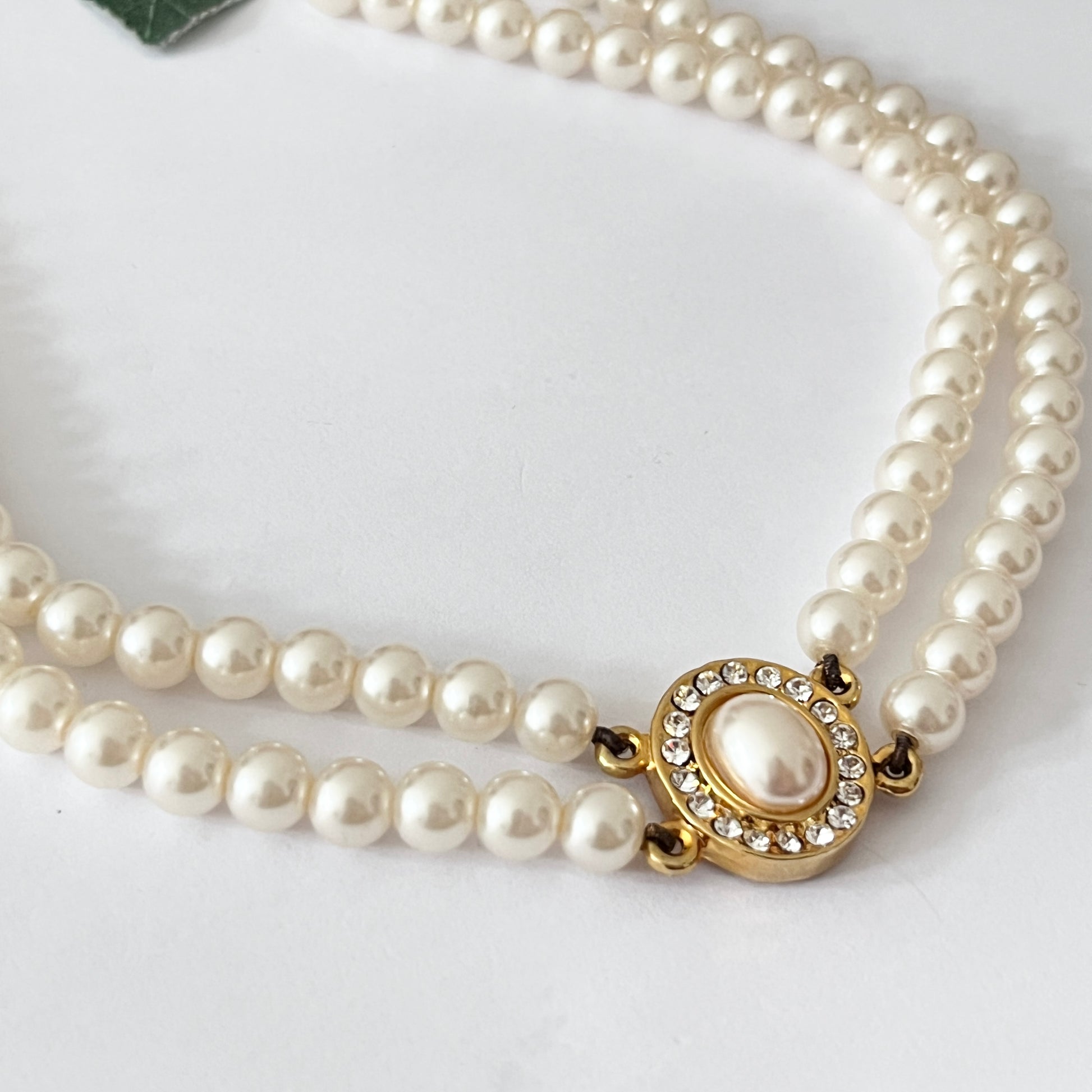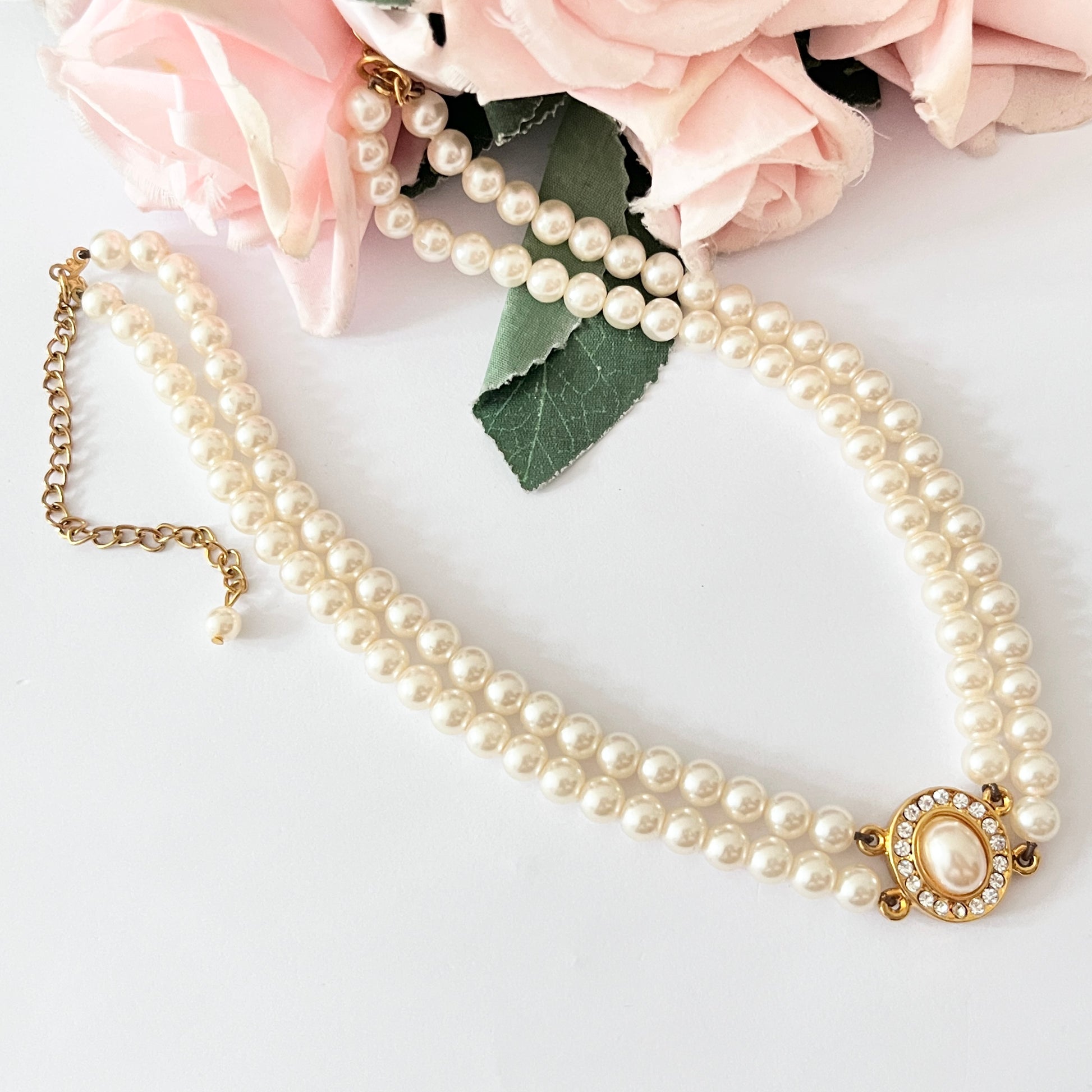 1980s Faux Pearl Diamanté Multistrand Collar Necklace