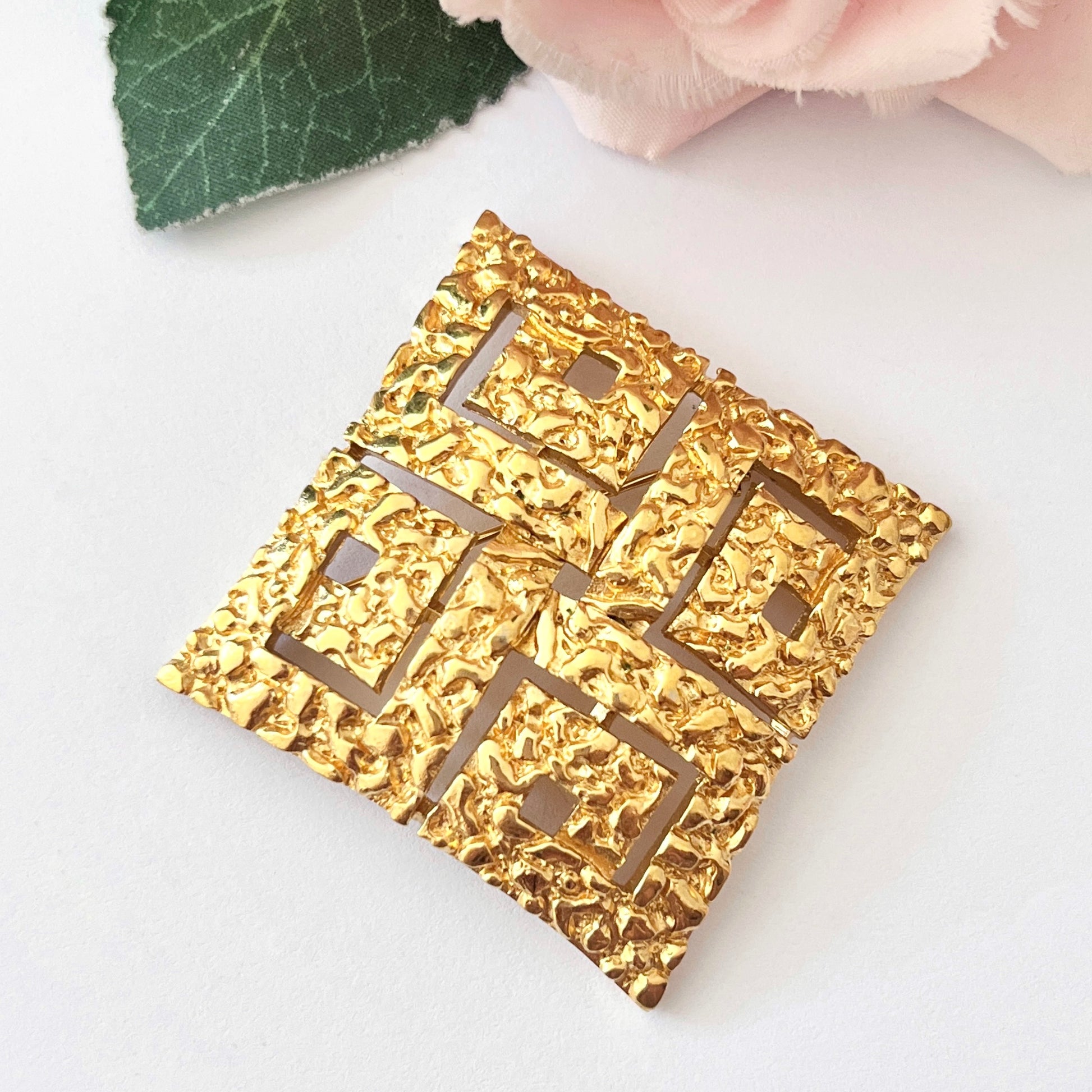 1980s Trifari Textured Gold Plated Diamond Statement Brooch