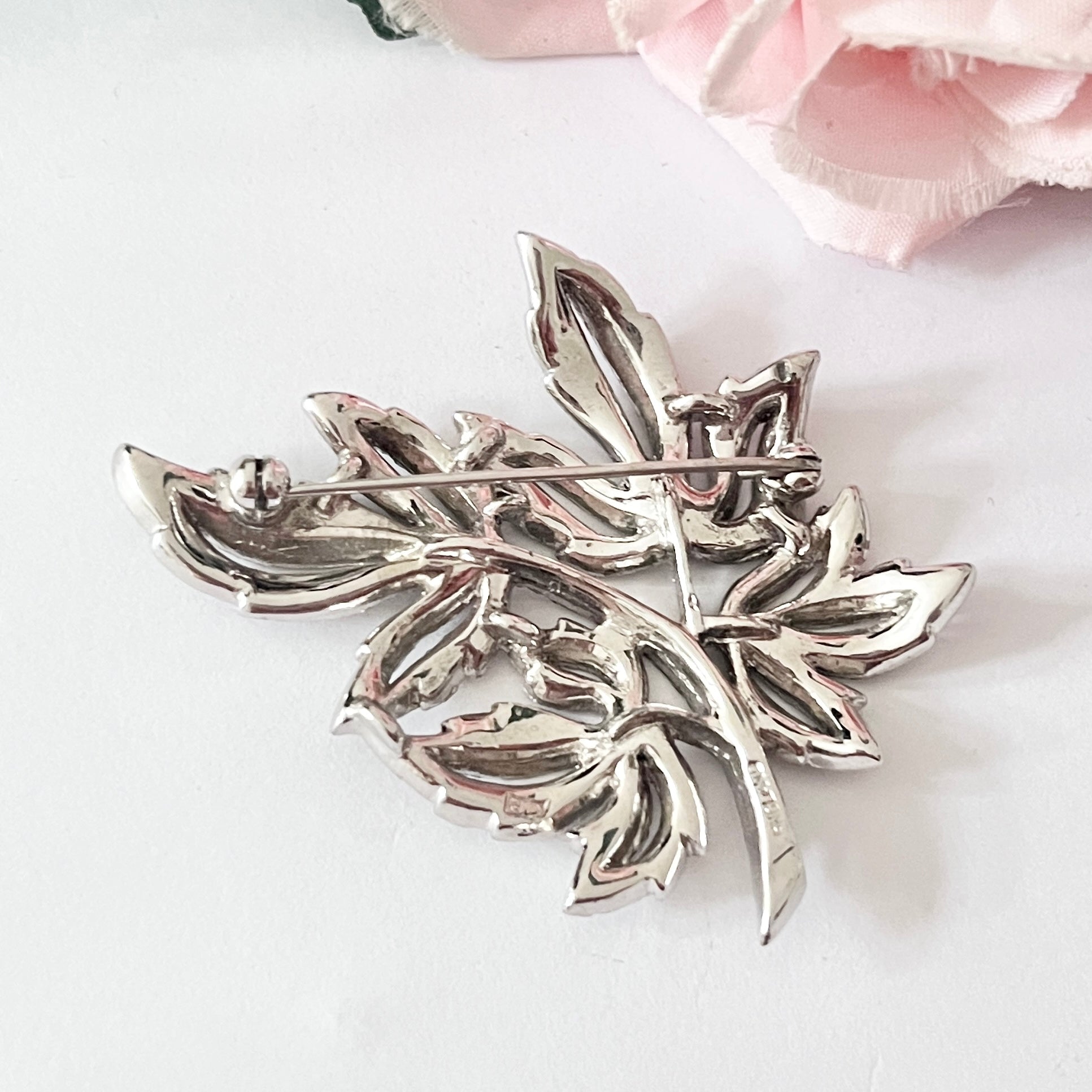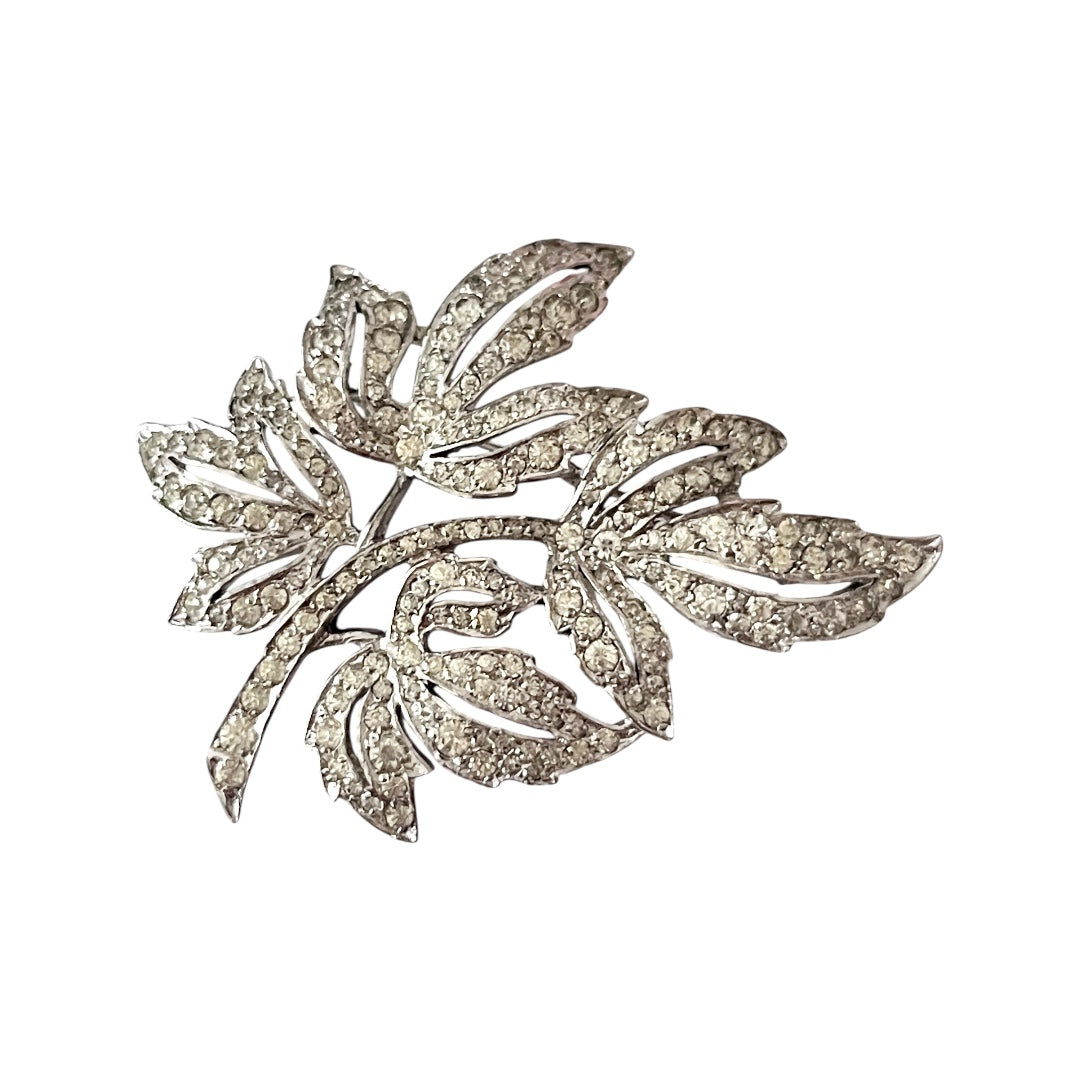 1950s CIRO Pearls Silver Paste Sparkly Leaf Brooch