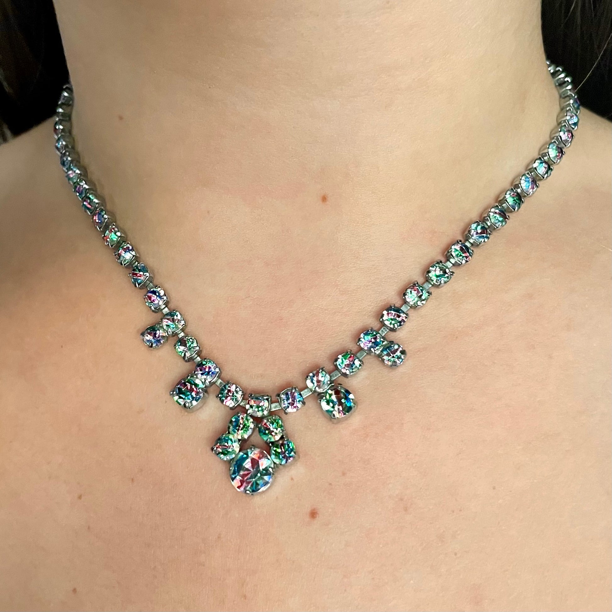 Pretty Art Deco 1930s Iris Rainbow Crystal Necklace
